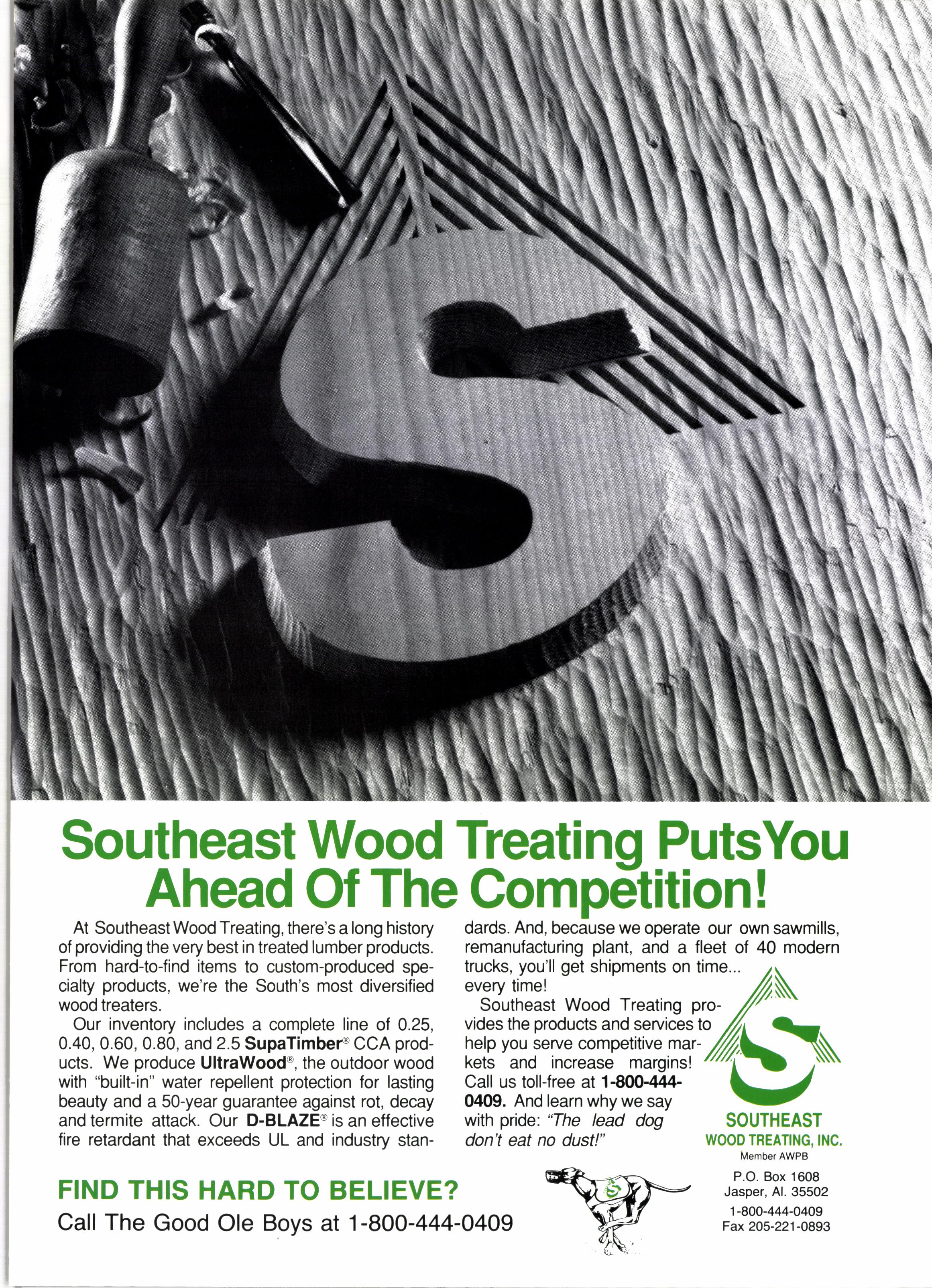 Southeast Wood Treating provides the products and services to :, help you serve competitive markets and increase margins! Call us toll-free at 1-800-4440409. And learn why we say with pride: "The lead dog don't eat no dust!"