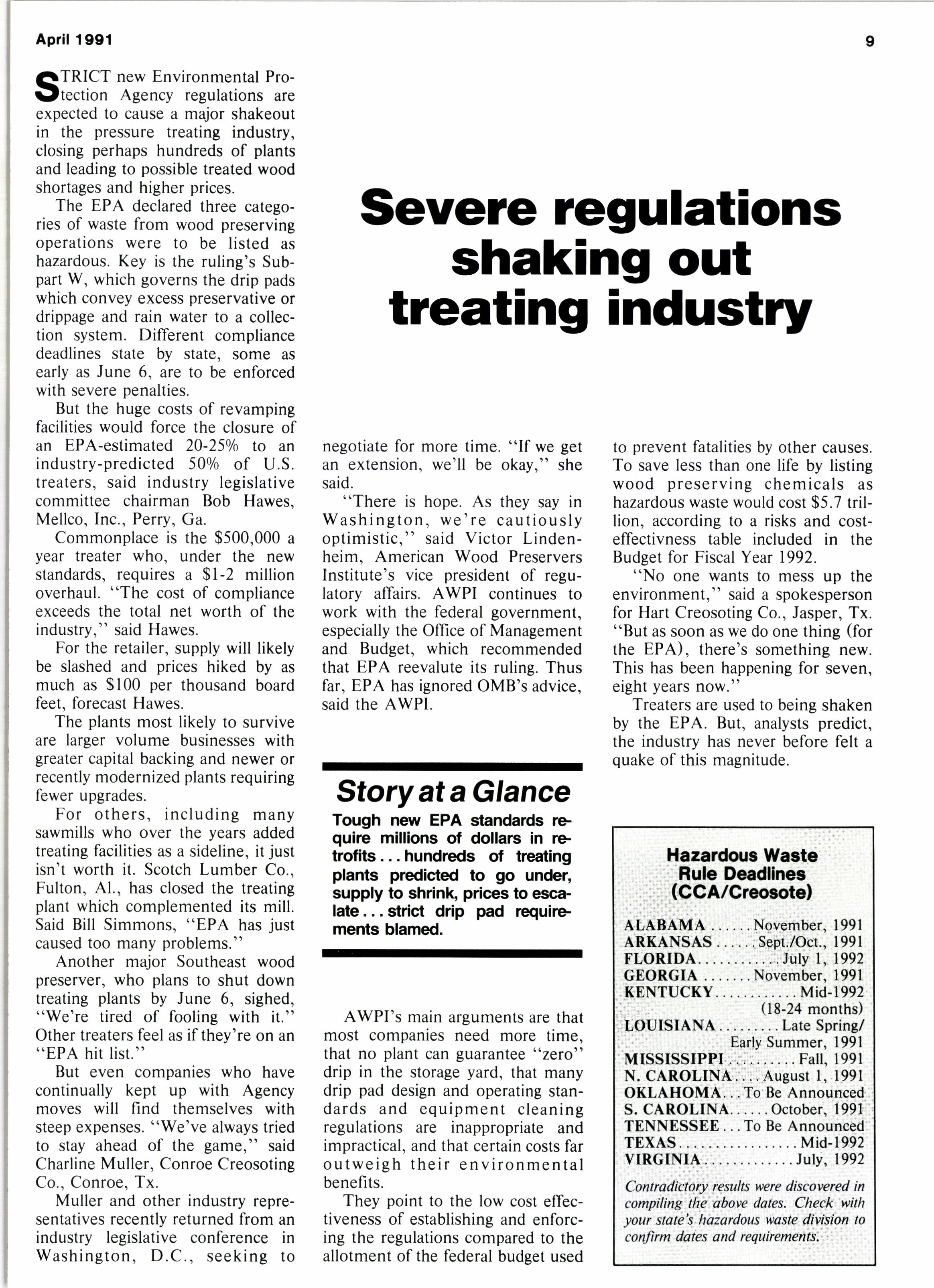 But even companies who have continually kept up with Agency moves will find themselves with steep expenses. "We've always tried to stay ahead of the game," said Charline Muller, Conroe Creosoting Co.. Conroe. Tx.