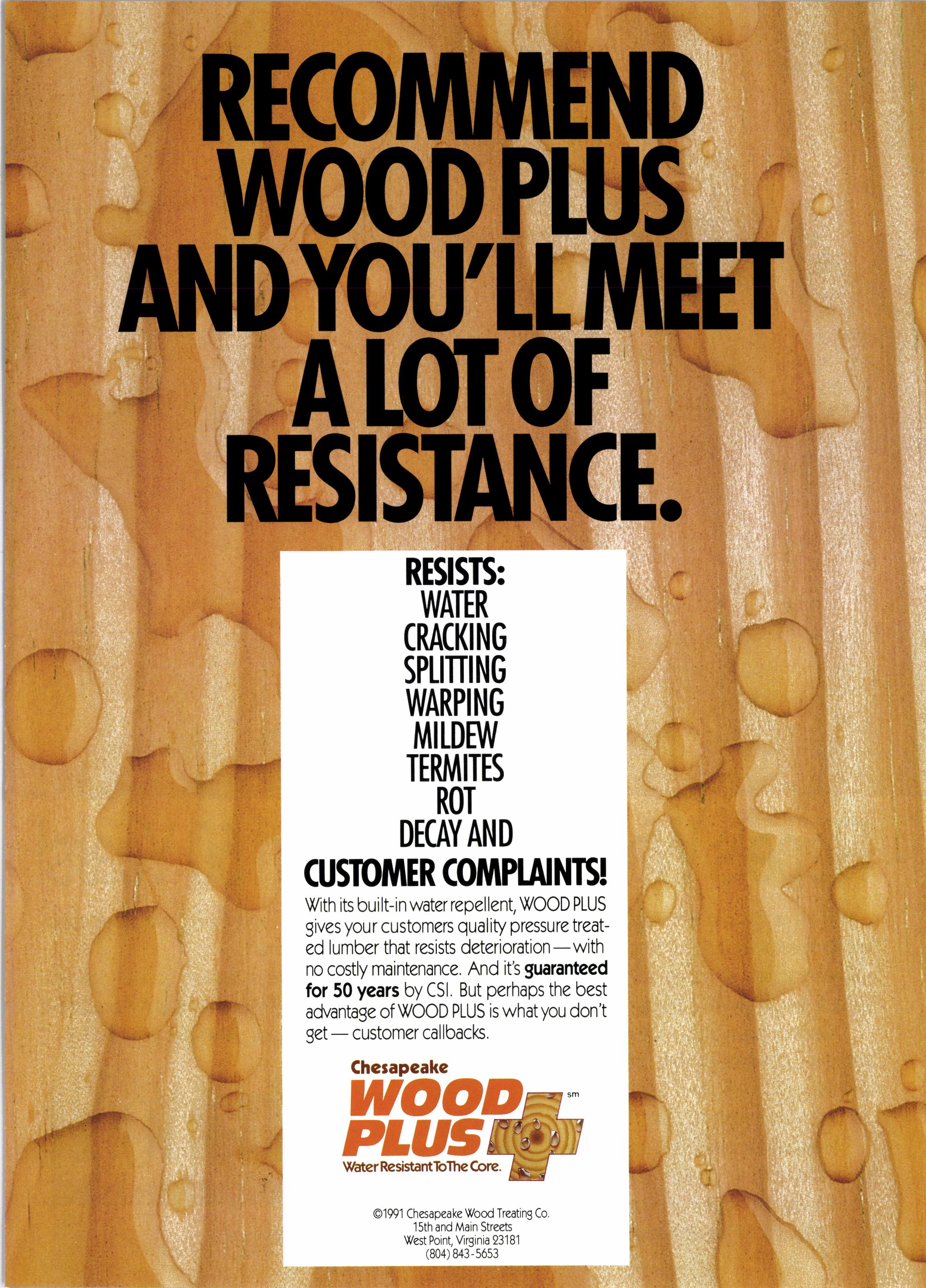 W th rts bu t-rn waler repellent, WOOD PLUS J reS ,O,r C-StOre"S q;altry otessure treated umber that resrsts dete r orat onw th no costly maintenance. And ts guaranteed for 50 years b, CS B-t perraps tle best advantage of WCCD PLUS s what you don't getcustomer ca backs.