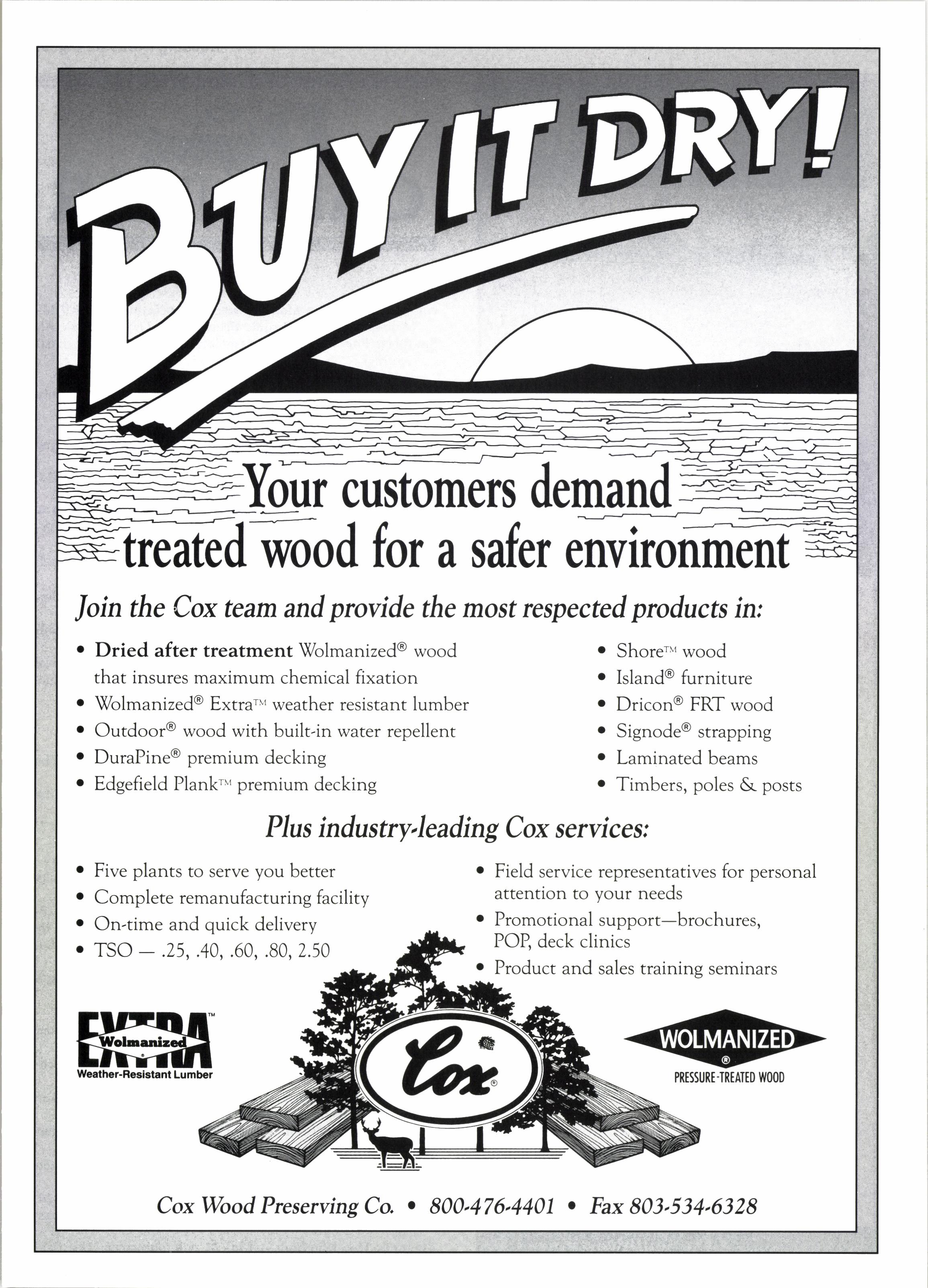 By Bruce R. Palmer Manager, sales and marketing Cox Wood heserving Co.