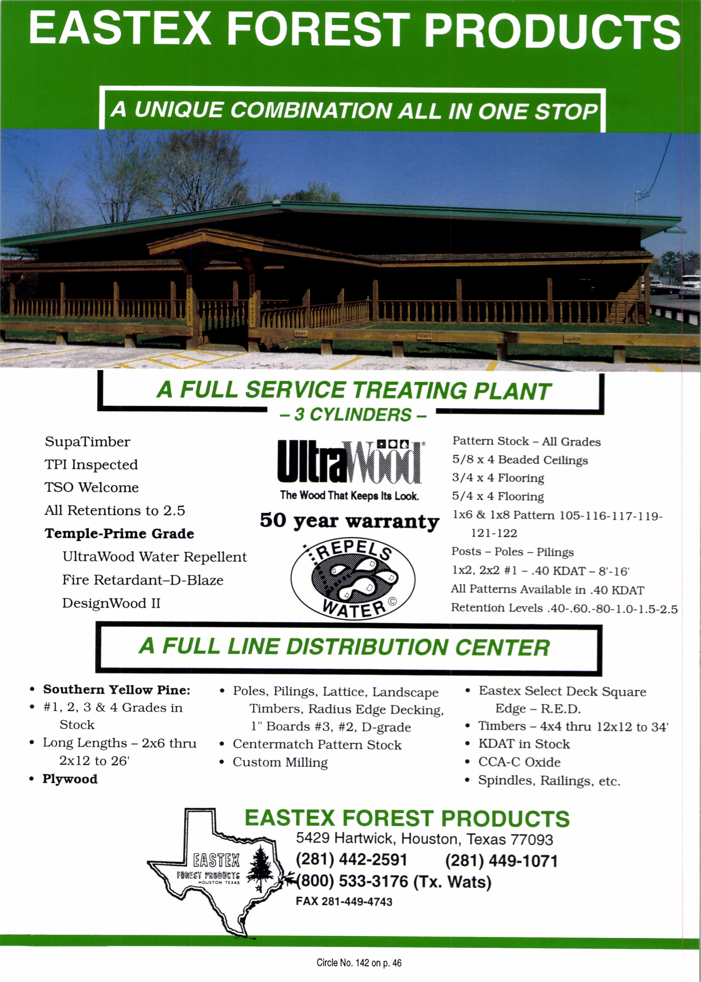 Their customers agree. "We work well with them, have for a long time," says Dave Spencer, lumber buyer for Southeast Wood Treating, Montgomery, Al. He attributes their successful long-term relationship to effective communication between buYer and seller. "We have five treating plants around the country. They do a good