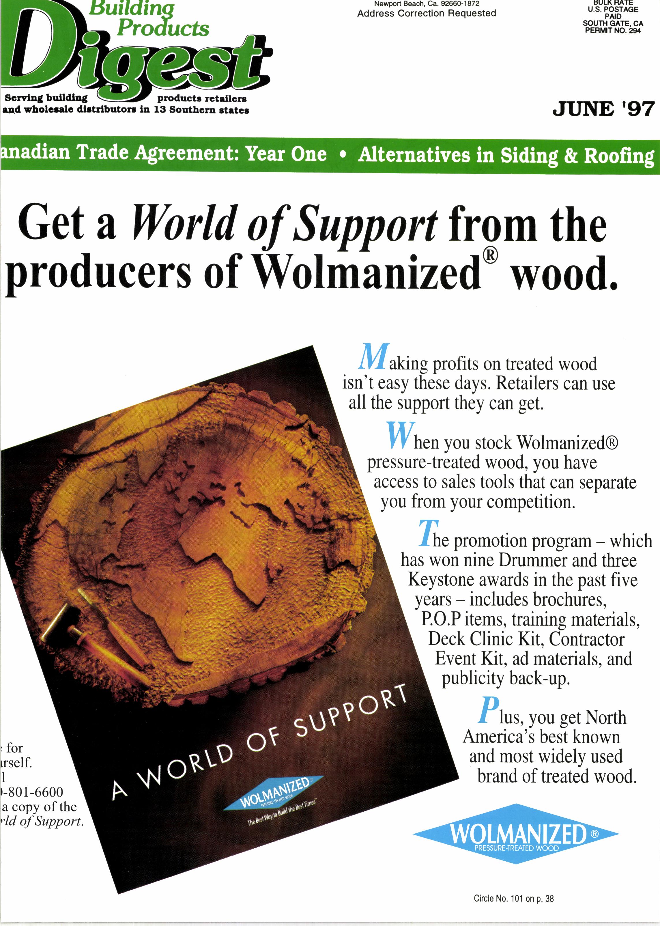 Wn nvou stock Wolmanized@ pressure-tr6ated wood, you have access to sales tools that can separate you from your competition. 11 I he promotion program - which has won nine Drummer and thLree Keystone awards in the past five