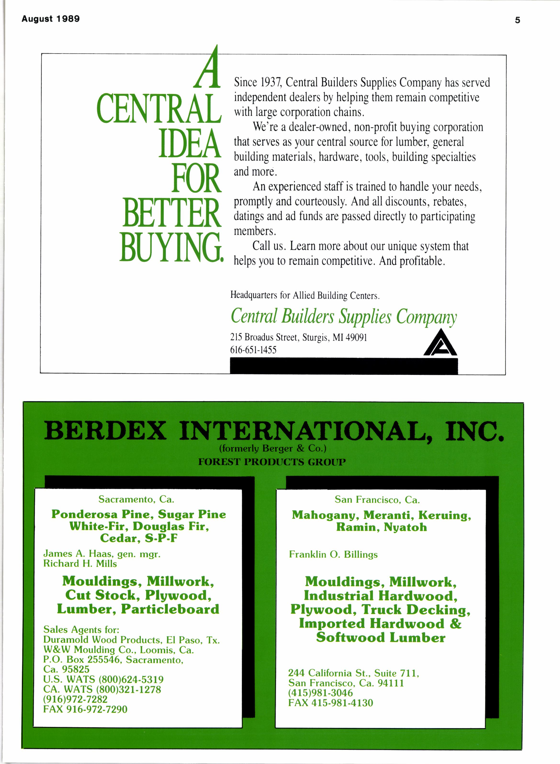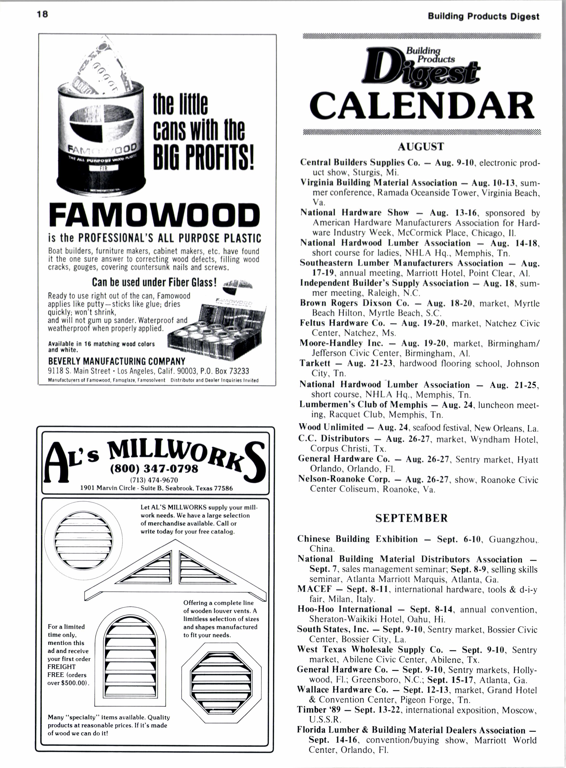 I 989, Cutler Publishing, Inc. Cover and entire contents are fully protected and must not be reproduced in any manner without written permission. All Righls Reserved. Building Products Digest assumes no liability for materials furnished to it. Servrng rne rumocrlZ& markctr In l3 Southcm.tatc.