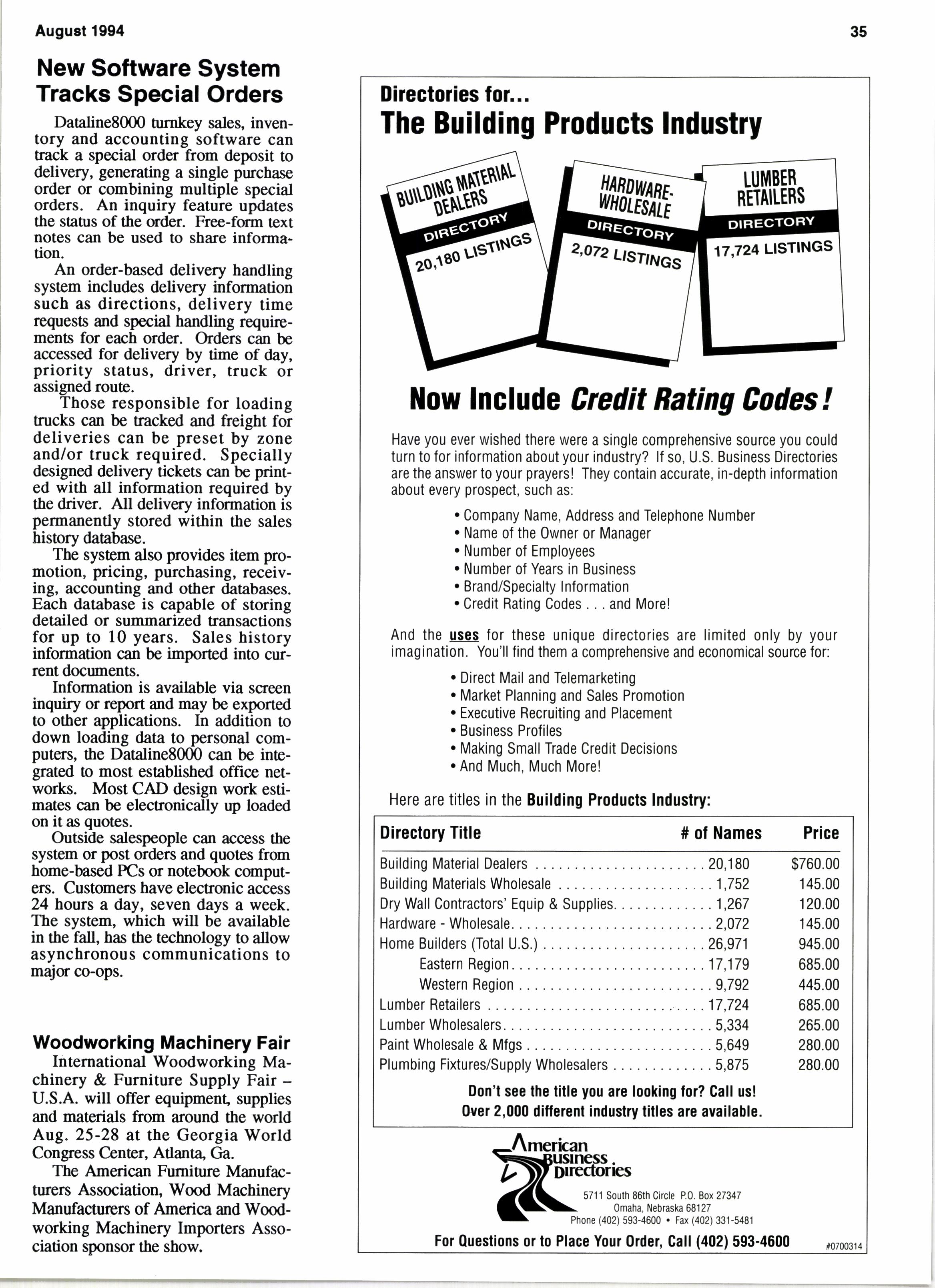 Desigrred for building materlals retailers and wholesalers, this complete-system tnclude6 point of sale, order processlng, bilXng, sophlsticated prtcing (markup, markdown, contract, quandty breaks. etc.) accounts recetvable and credlt, inventory contnol, purchase order control, sales analysls. accounts payable. genelal ledger.