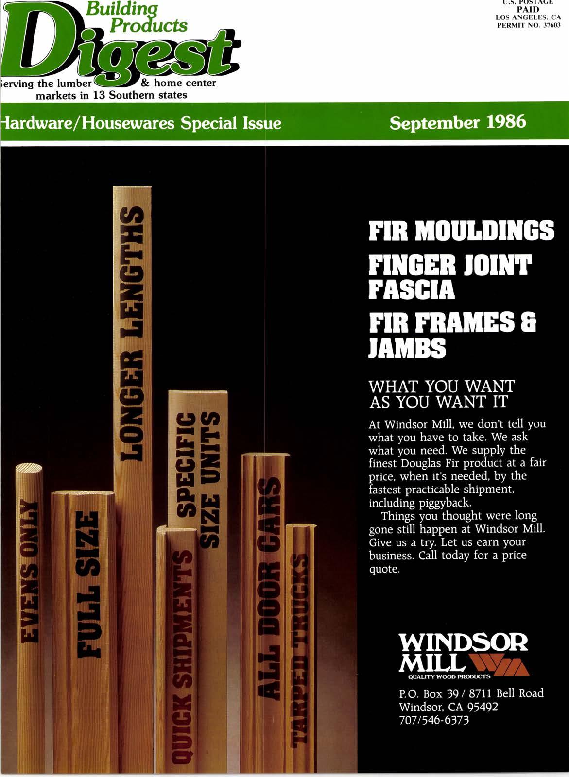 Hadwarc/Housewarcs Special l*sue HousewaresShow Will HaveNewLook, Approach 9 A Handful Of ldeas To Help You Sell Housewares lO Companies, DealersSoundOffOn lmported Tools l2 Home Centers Encouraged To Reconsider Housewares l4 Demographics,LifeStyleChangesInfluence Sales l5 Wickes Makes Tender Otfer For Owens-Corning Corp. l7 National Hardwood Lumber Meeting Set For Canada 19 Hechinger's Talk Opens Successful Hardware Week 21 DealersReady For 70th Annual Meeting In October 33 Wood Paneling Sales Kit Available To Dealers 36 Courts Set To Hear Virginia Blue Law Challenge 38 Calendar l8 Classified 35 Advertisers Index 38 Editorial 6 News Briefs 16 Home Center Merchant 20 TexasTopics 22 Arkansas & Okla. 22 Southeastern Scene 23 Copyright O 1986, Cutler Publishing, Inc. Cover and entire contents are fully protecred and must not be reproduced in any manner without written permission. Building Products Digesr assumes no liability for materials furnished to it. m.arkets in 13 southern