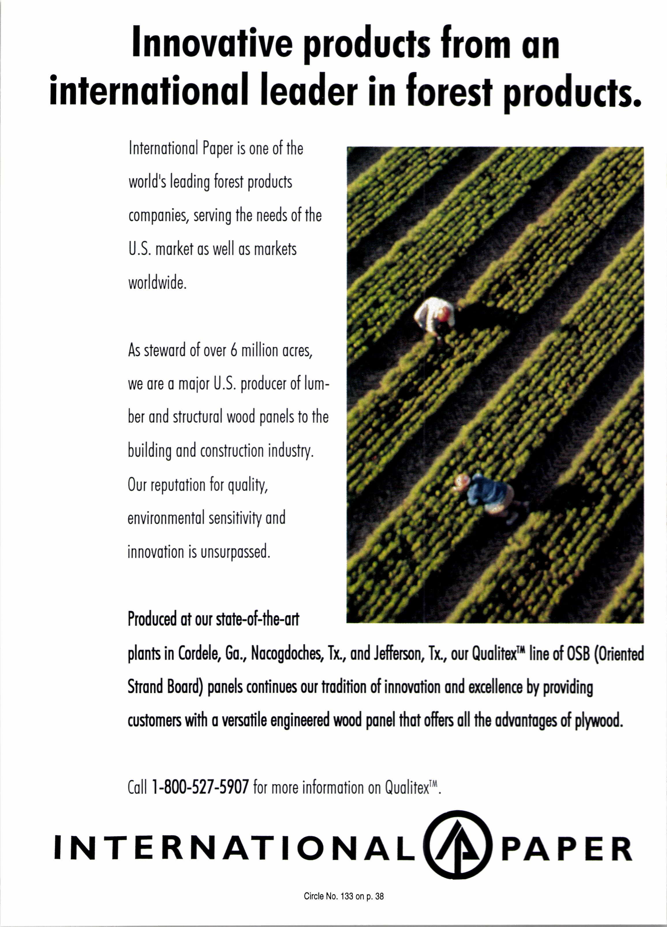 Internotionol Poper is one of the world's leoding fore$ products componies, serving the needs of the U.S. morket os well os morkets worldwide. As steword of over 6 million ocres, we ore o moior U.S. producer of lumber ond struclurol wood ponels to the building ond construction industry. Our reputotion for quoliry environmentol sensitivity ond innovotion is unsurpossed.