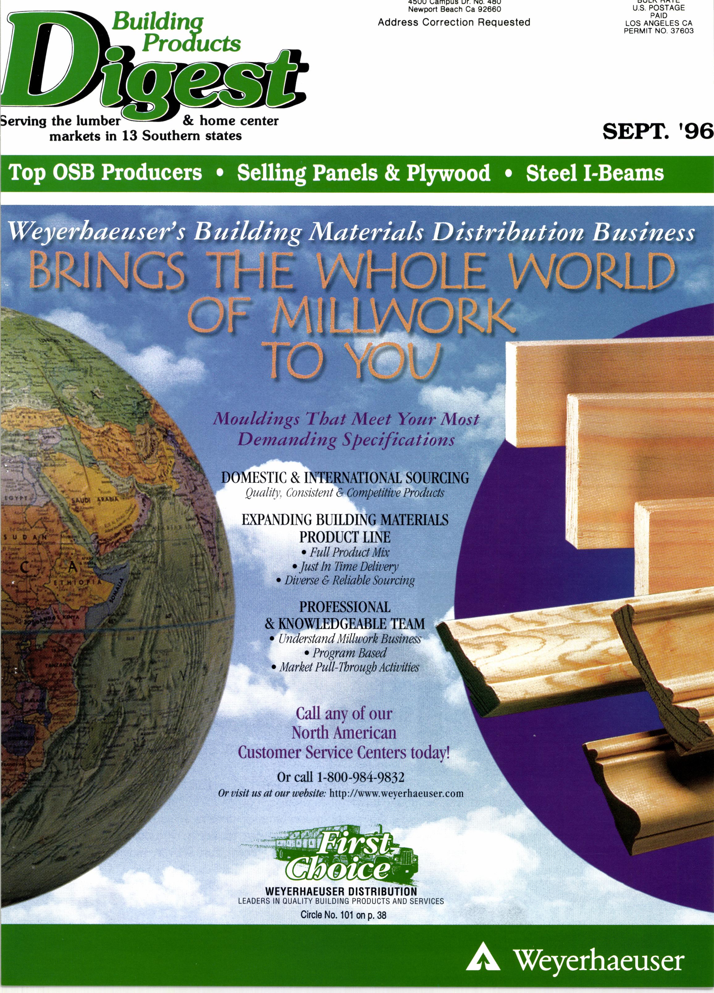 Buildinuarna Products markas in 13 Southern states 40uu uamous ur. No. r6u Nswport Eoach Ca 92660 Address Correction Requested U.S. POSTAGE PAID LOS ANGELES CA PERMIT NO.37603 SEPT.'96 WEYIRHIEUSER LEADERS II{ OUAIITY BUITOIIIIG PRODUCTS AND SERVICES r ' : r ,r Cilclell*. lS1 m p. SA