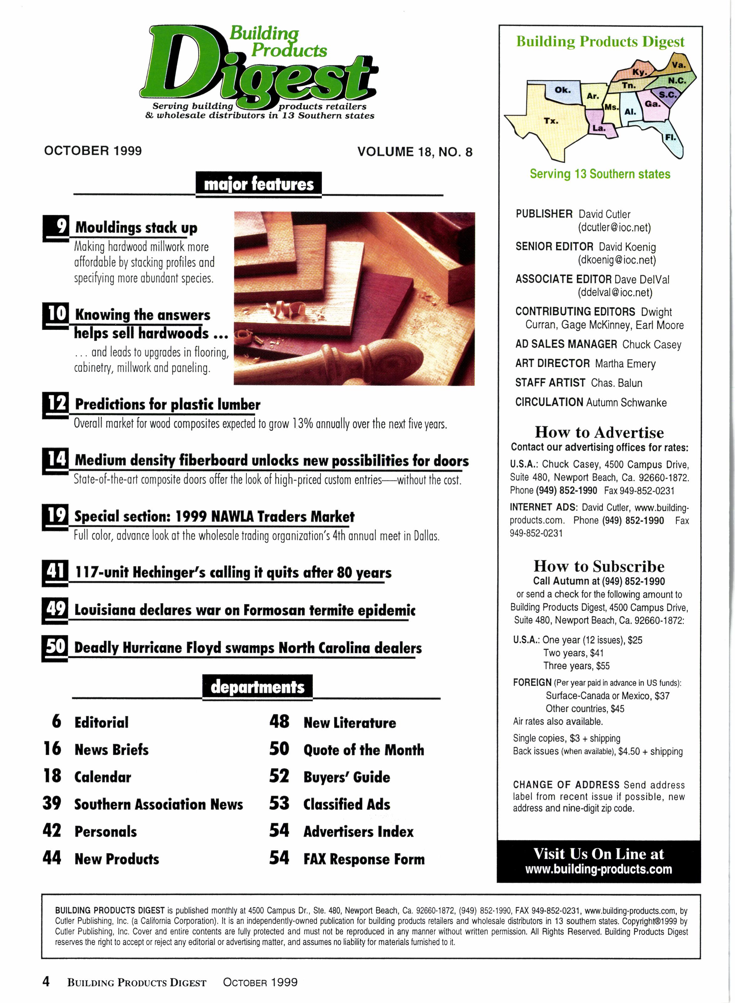 or call (949) 852- 1990 or mail to Building Products Digest, 4500 Campus Dr., Suite 480, Newport Beach, Ca.92660-1872.
