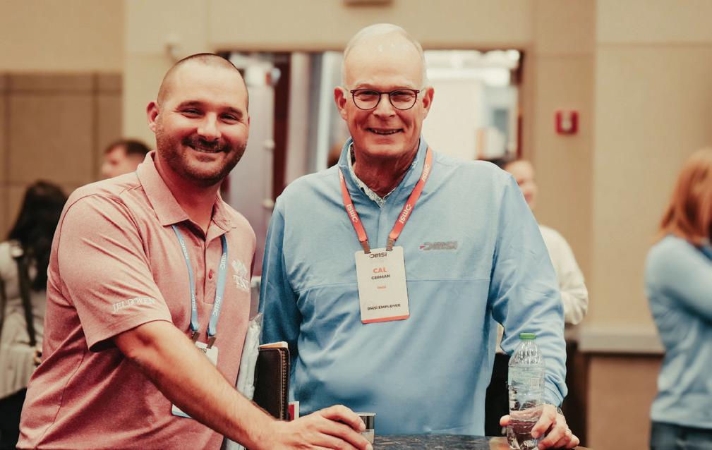 DURING THE event, DMSi CEO Cal German (right) visited with customers on the exhibit floor.