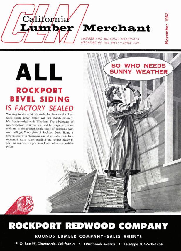 Beveled redwood siding primed with penta-based Woodtox was promoted by Rockport Redwood Co. and its sales agent, Rounds Lumber Co., Cloverdale, Ca., on the cover of the November 1963 edition.