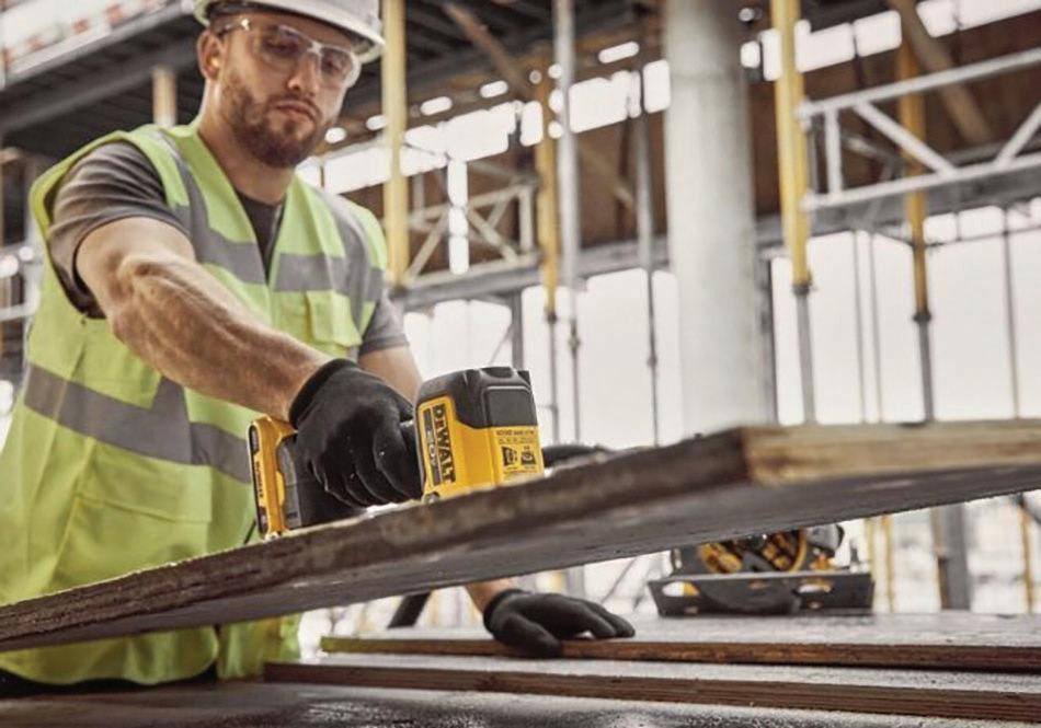 Powered by a DeWalt 20V MAX* battery, the tool can be used with a wide range of heavy construction materials, including glass, tile, metal, and semi-porous materials like wood, drywall, concrete and natural stones.