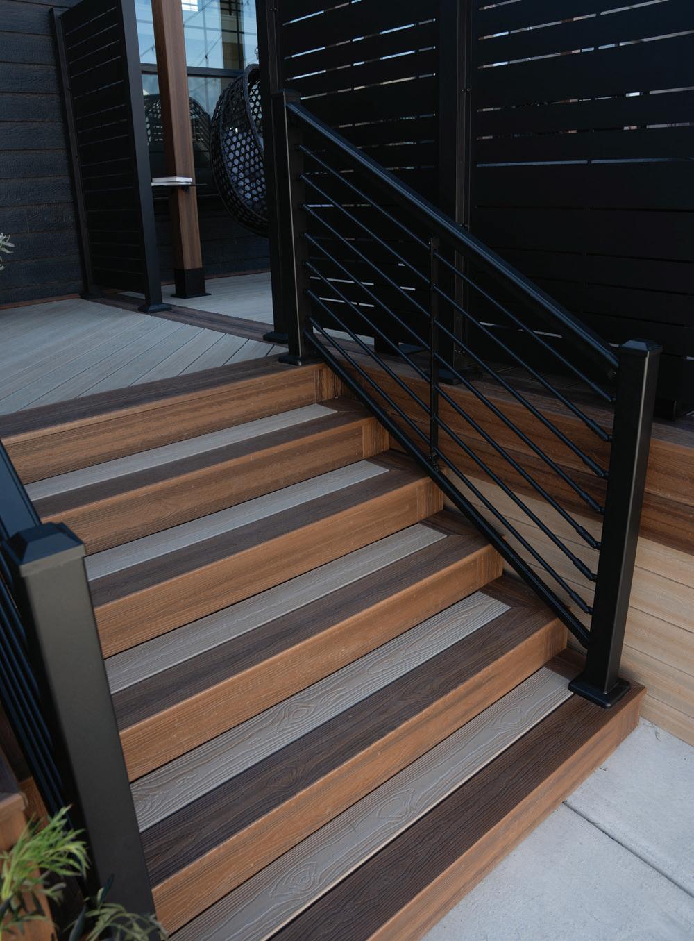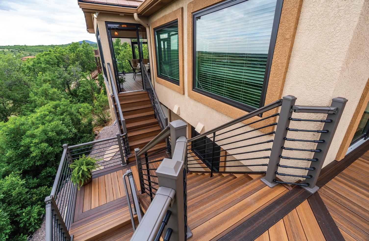 ALONG WITH DURABILITY and low maintenance, one of the many benefits of composite decking is its diversity of color offerings without the need to paint or stain. This provides building pros and homeowners with tremendous flexibility to design decks with unique styling that is eye-catching, functional—or both.