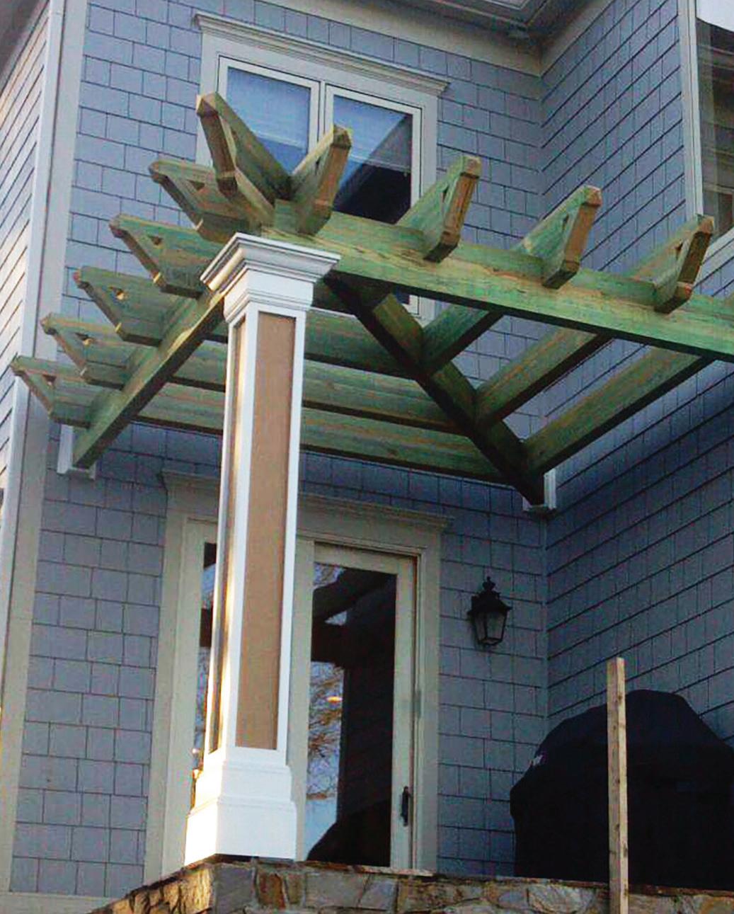 With Versawrap, one worker can snap a beautiful, weatherproof shell around an unfinished wooden post in just a few minutes, instead of cutting and fastening four mitered corners for every column.