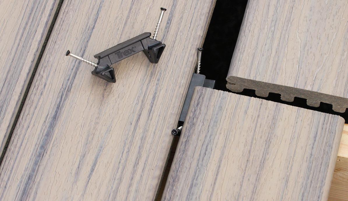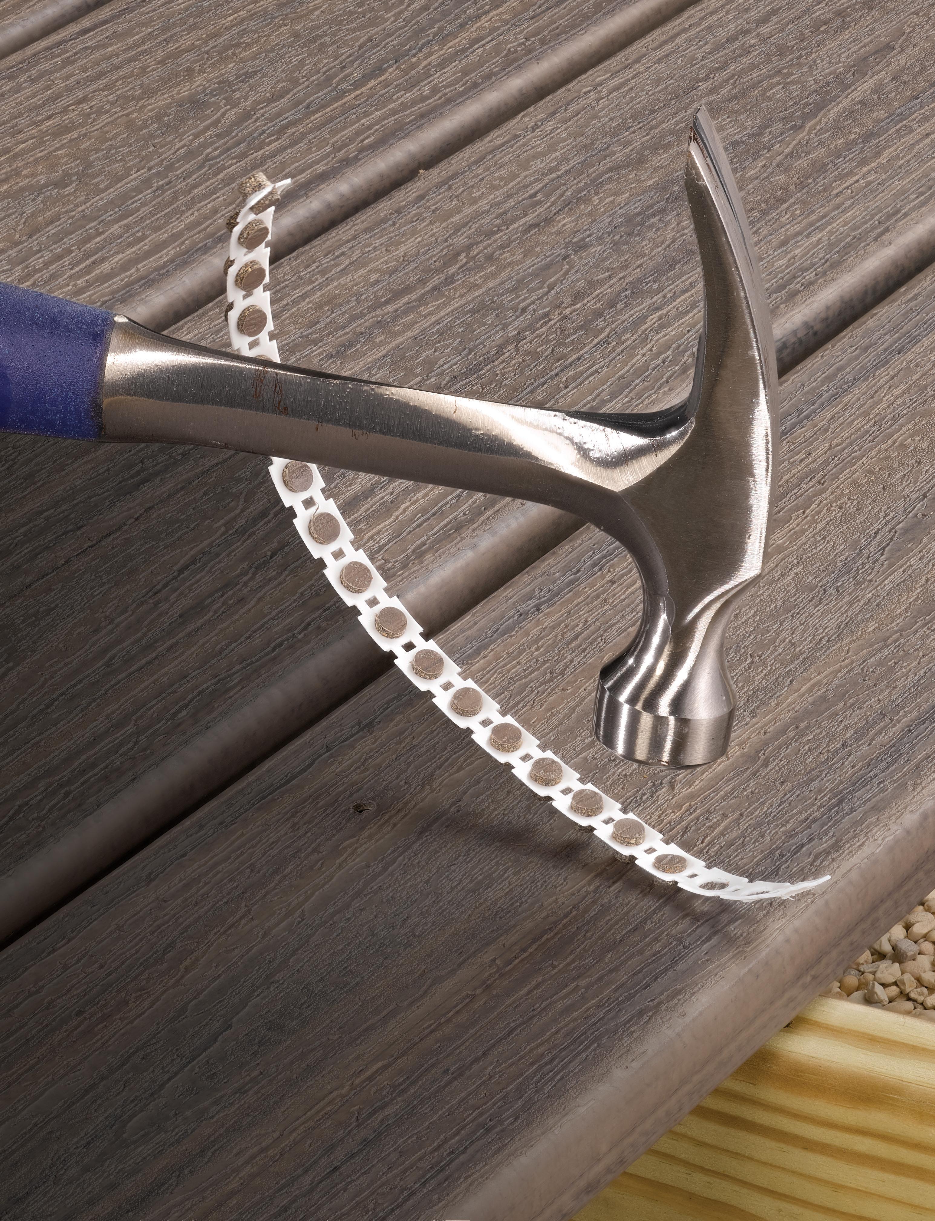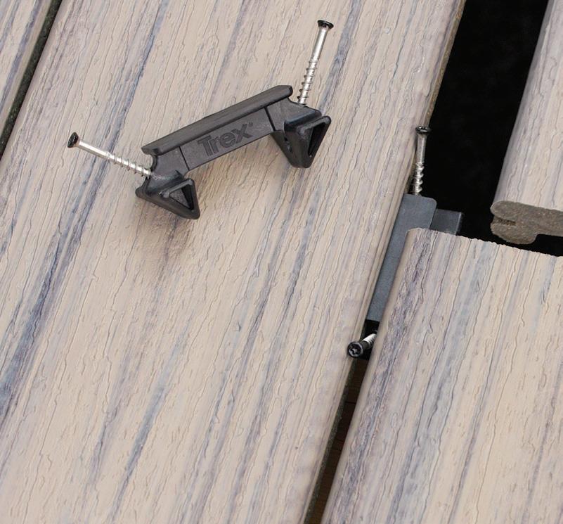 MANY COMPOSITE decking lines have complementary fastening systems specially made to coordinate with their sizes, shapes and colors.