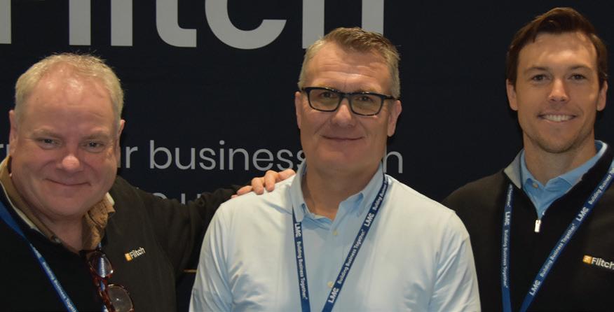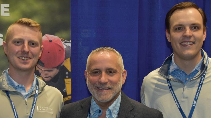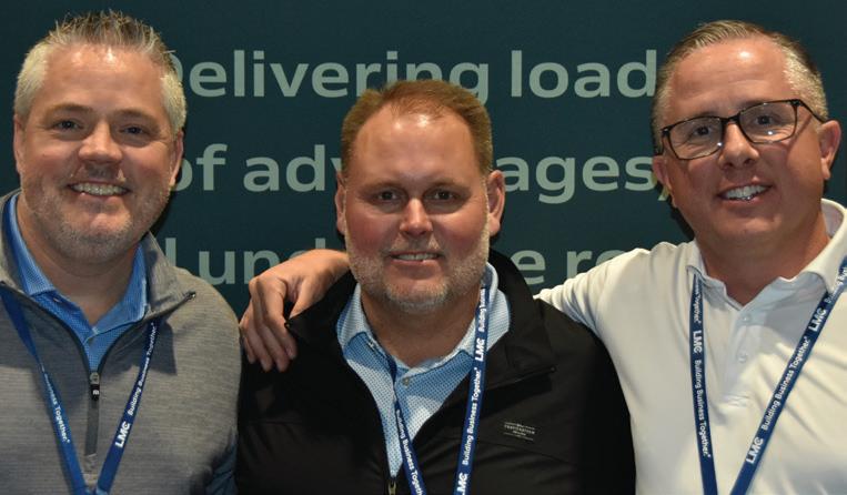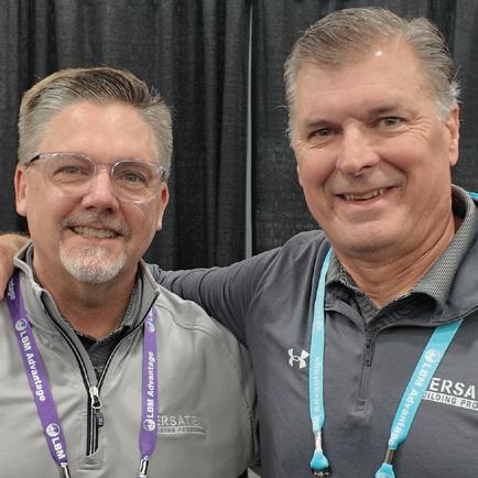 LBM ADVANTAGE drew record-breaking attendance to its 2026 annual buying show March 2–4 in Nashville, Tn. The event concluded [1] with an inspiring keynote presentation from actor, humanitarian and veteran advocate Gary Sinise (left), who shared stories from his work with the Gary Sinise Foundation, here with LBM Advantage president David DeJoy [2 ] Jeff Cullen, Chad Emery. [ 3 ] Gregory Wiessler, Thomas Hartwell. [4] Kenny Carchedi, Jay McCarthy. [5] Steve Guenther, Stacy Walley, Brian Powers, Andrea Thacker,