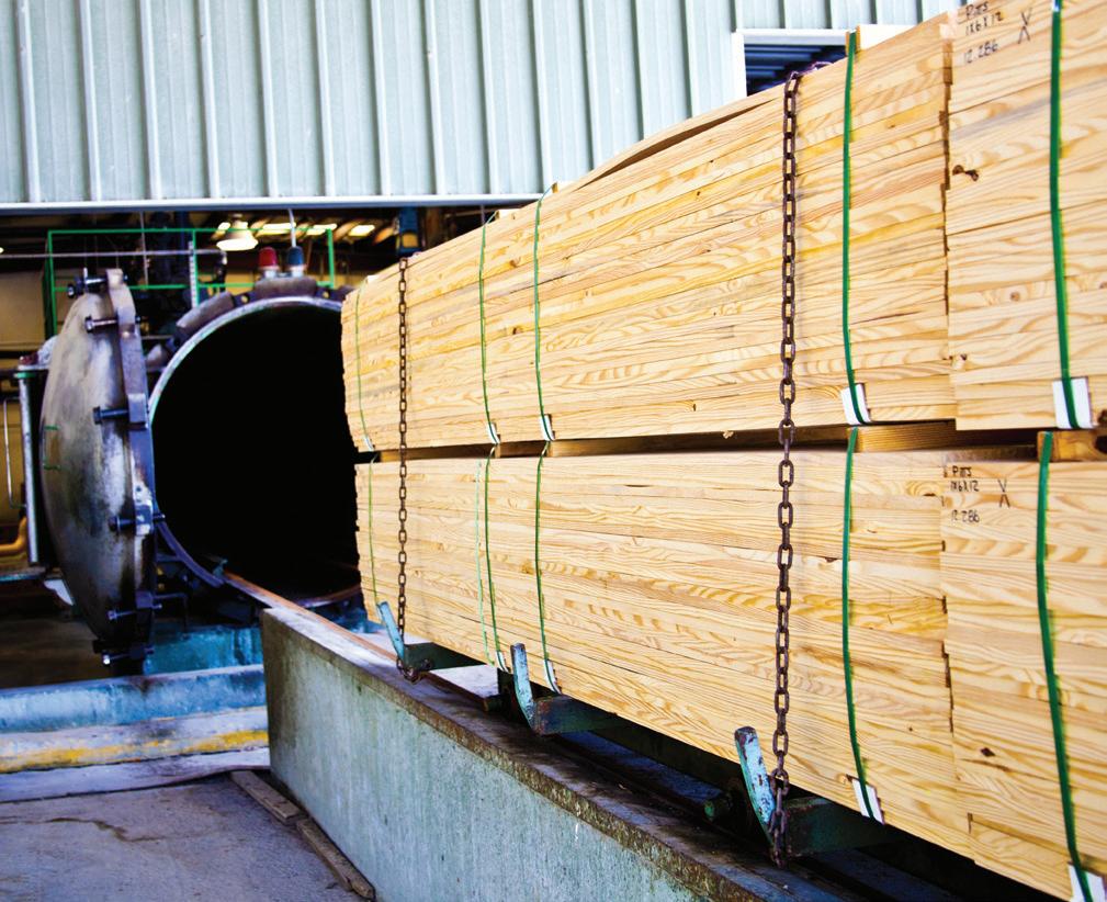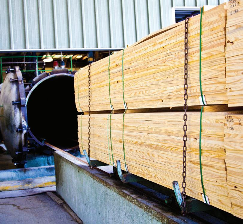 Conrad Forest Products treats in North Bend and Rainier, Or., and Arbuckle, Ca., using Wolmanized Heavy Duty CCA, Chemonite ACZA, Wolmanized Outdoor Wood CA-C, Sillbor/FrameGuard borates, interior and exterior FRTW, and QNAP. MM