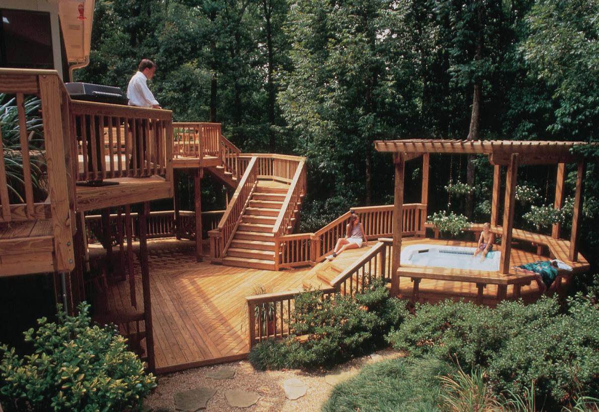 IS A NATURALLY beautiful, abundantly grown building product that, when protected with preservatives such as copper azole, lasts a long time, enhancing backyard living.