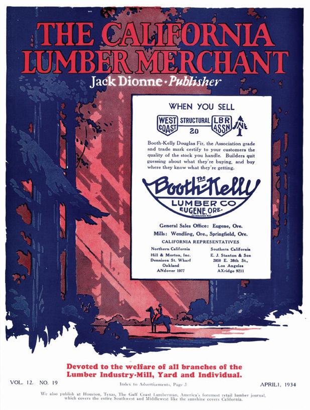 The April 1934 front cover was sponsored by Booth-Kelly Douglas Fir. Its former mill site in Springfield, Or., is now the home of a business park, Booth-Kelly Center.