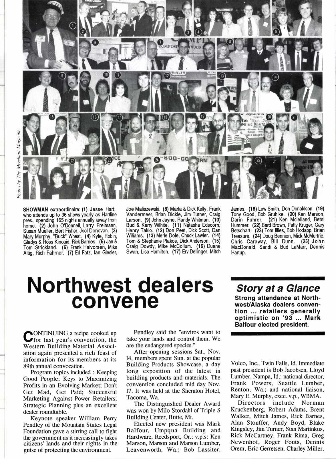 Elected new president was Mark Balfour, Umpqua Building and Hardware, Reedsport, Or.; v.p.s: Ken Marson, Marson and Marson Lumber, Leavenworth, Wa.; Bob Lassiter,