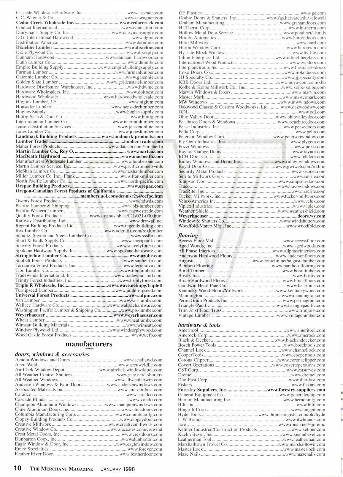 The following Web sites represent a high percentage of building product companies and organizations now conducting business on the Internet. With new sites being launched daily, a complete list would be impossible. To ensure your site is listed in next yea/s directory please notify us if you have a new site or your site was omitted.