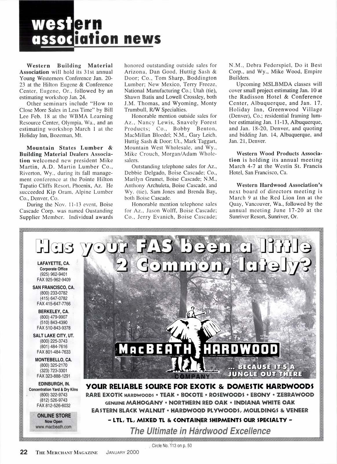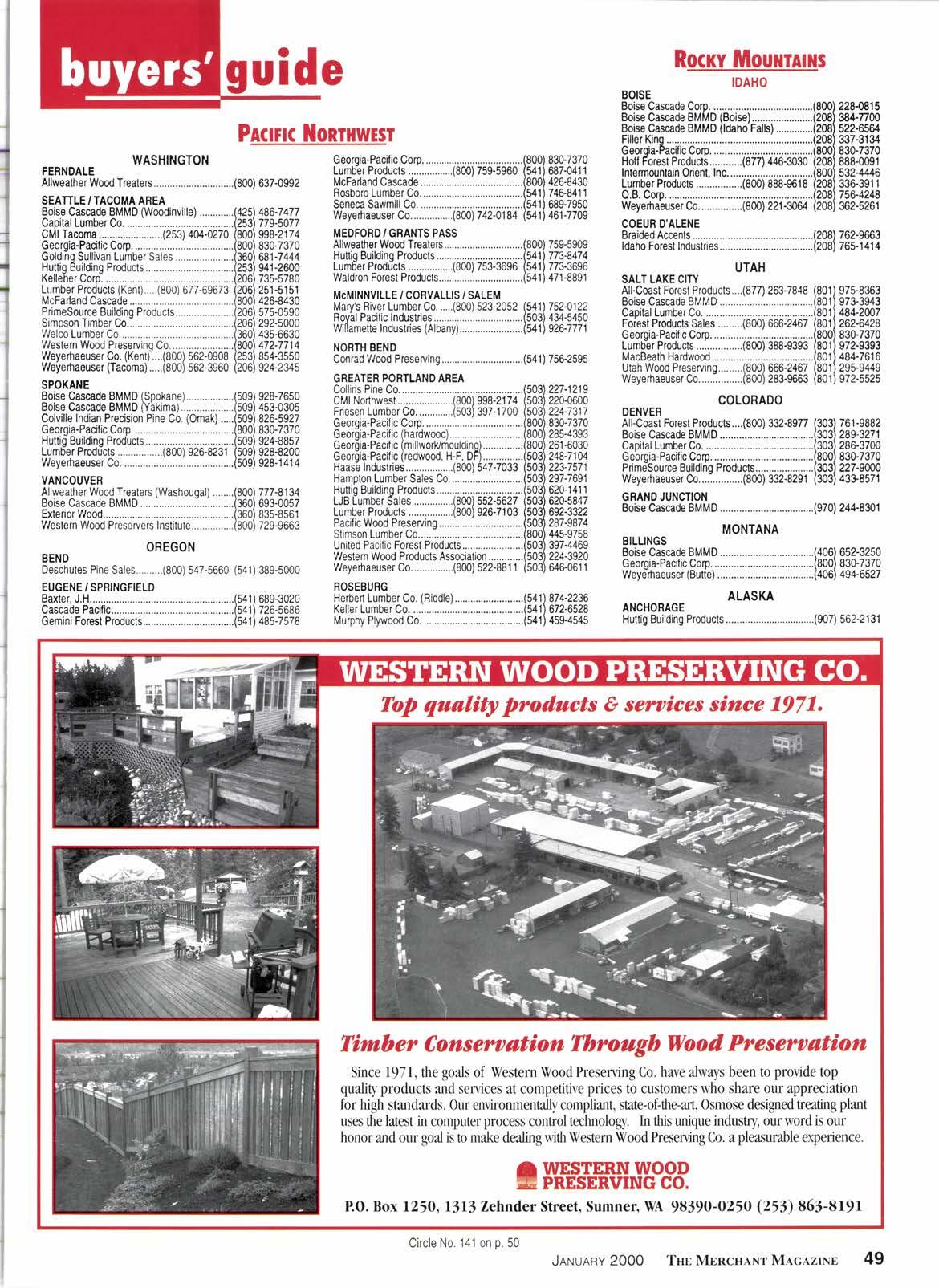 . WESTERN WOOD E PRESERVING CO. P.O. Box 1250, l3l3 Zehnder Street, Sumner, WA 9S390-O25O (253) 863-8191 Circle No. 141 on p.50 49 Jmunnv 2000 Tun MoncHlNr MncnztNr