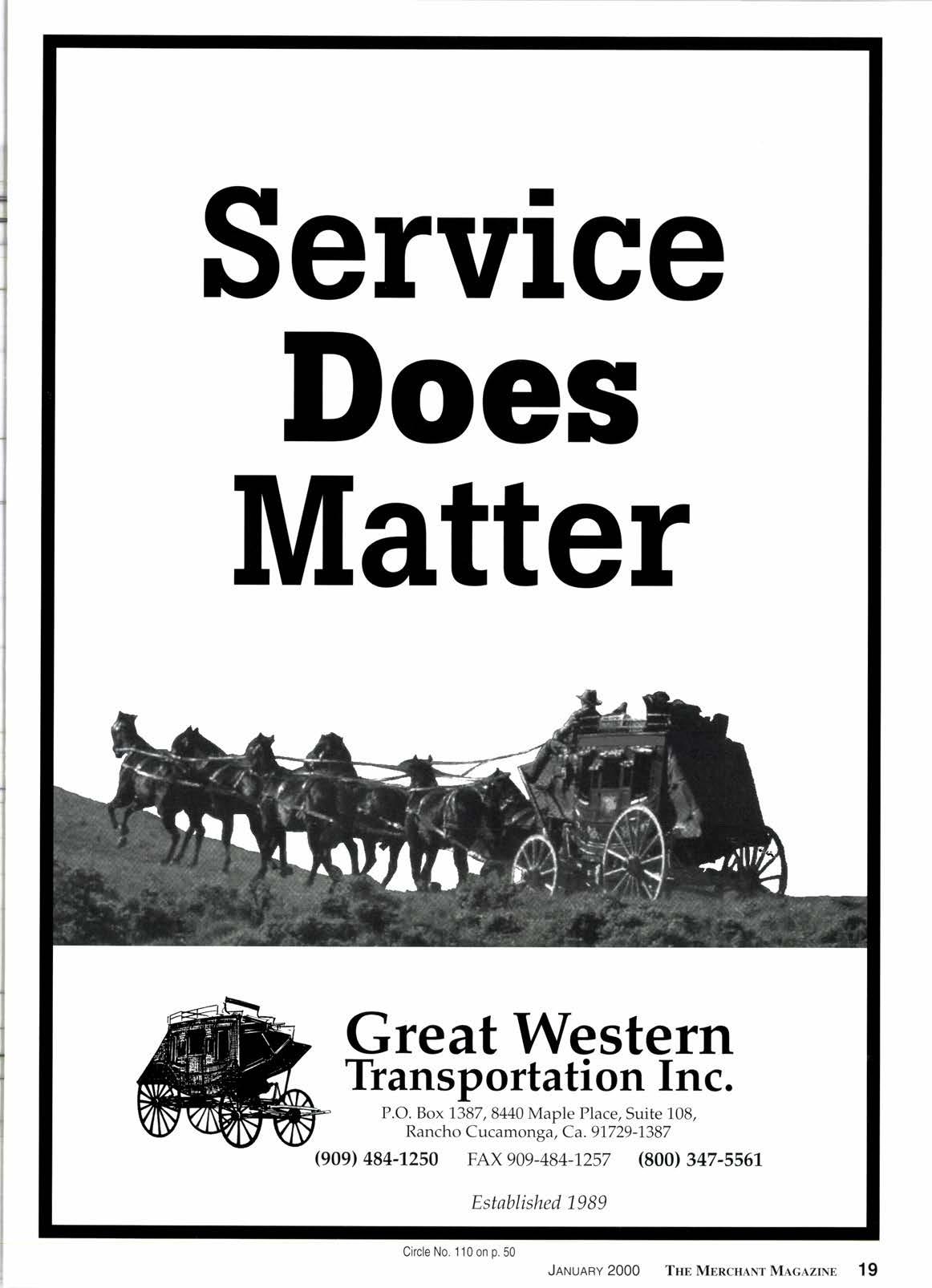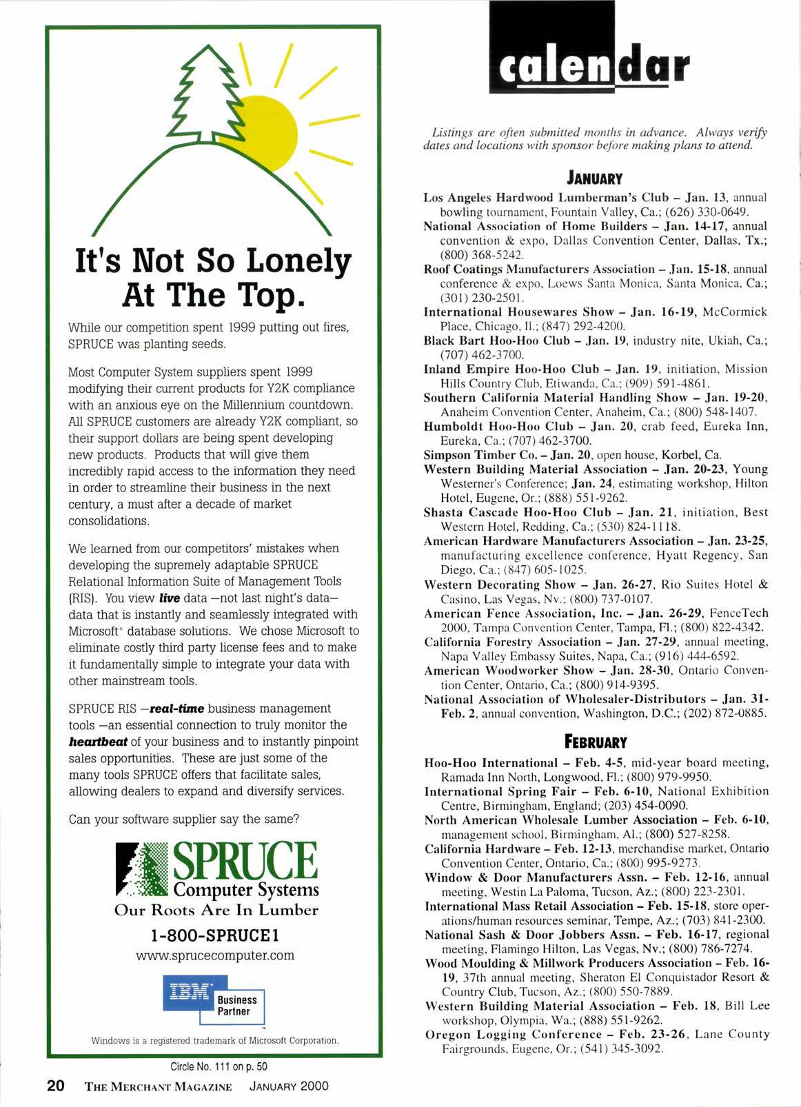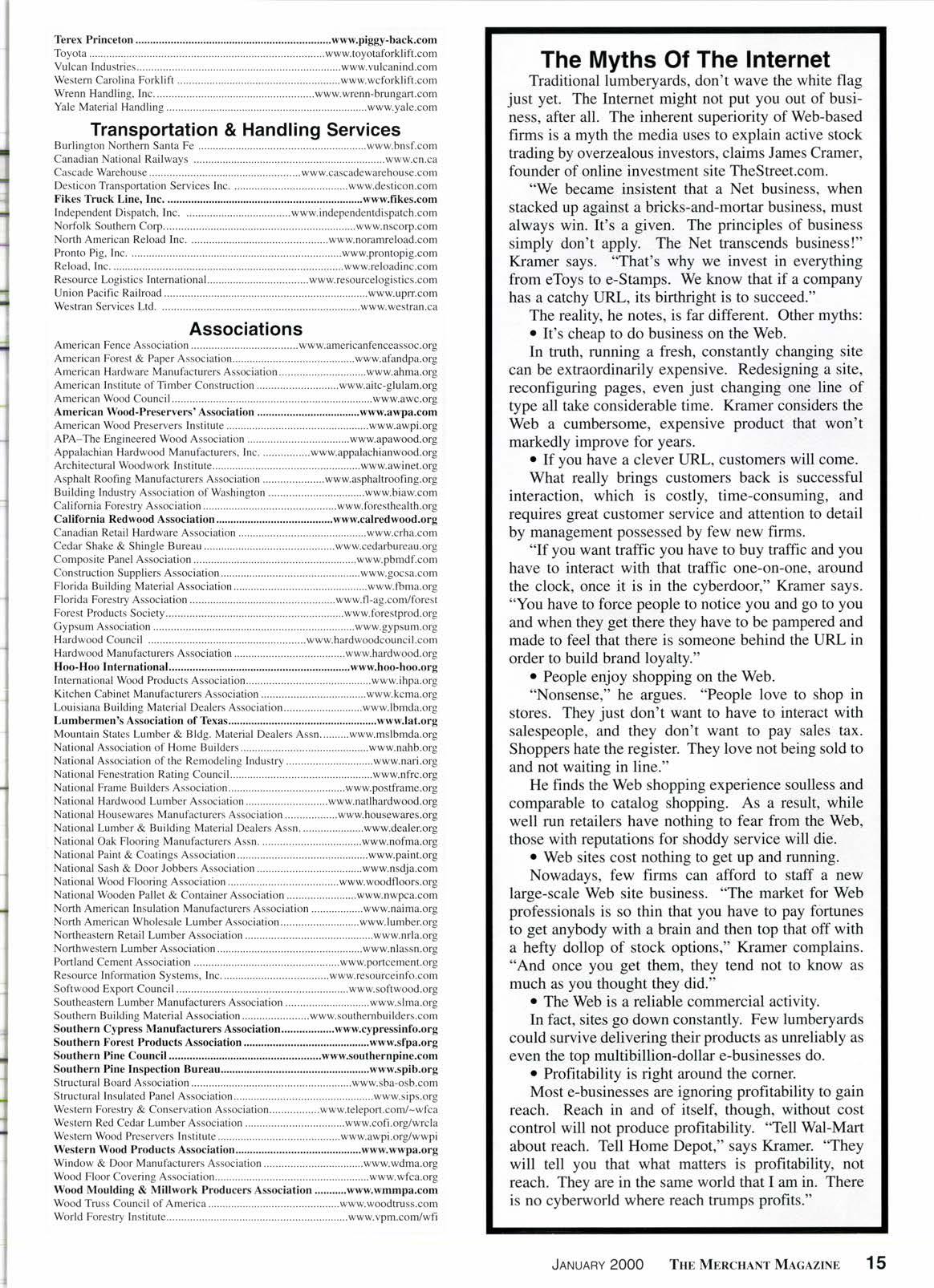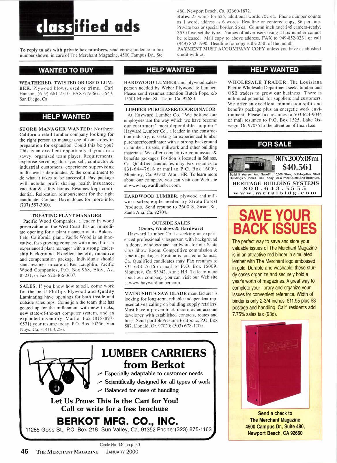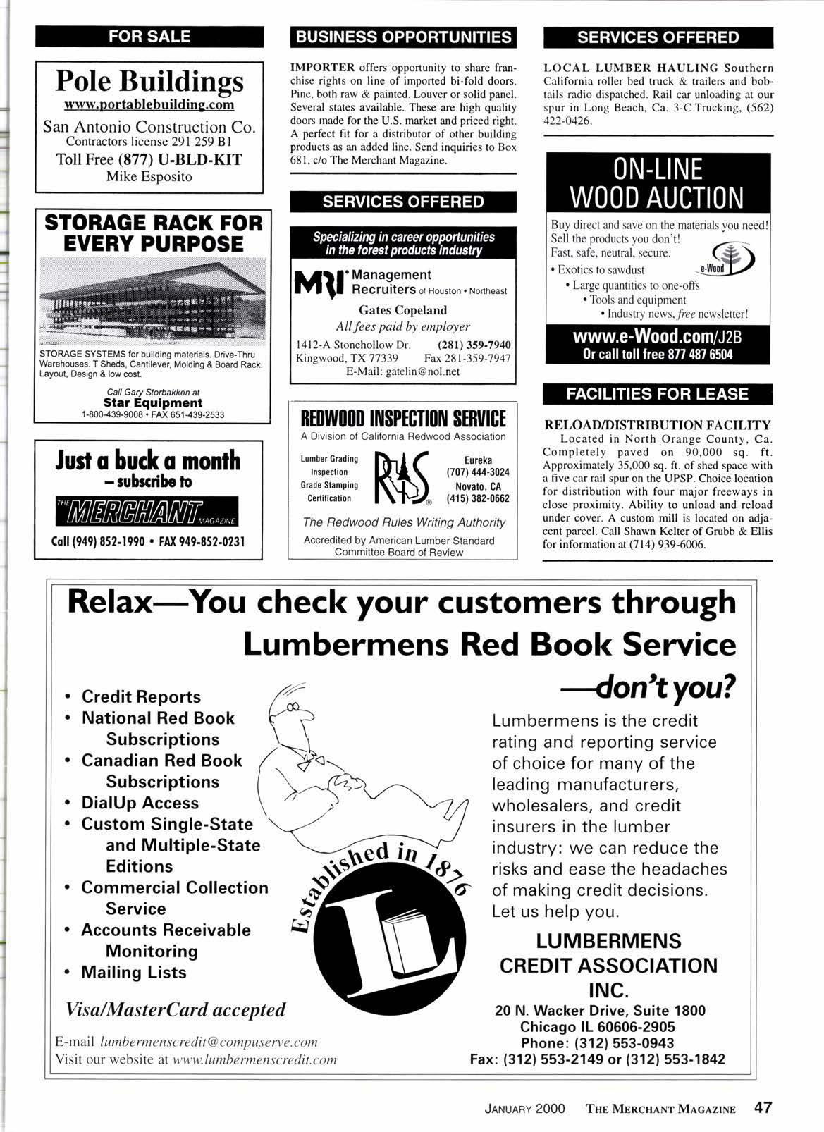 3.C TRUCKING First Class Lumber Haulers (soz) 422-0426 FAX562-423-6283 RAIL CAR UNTOADING UNION PACIFIC 2380 E. Curry Long Beach, Ca. 90805 a3ctrucking @ earlhlink. net Circle No. 106 on p. 50 THr MrRcslr,rr MncazrrvB JnNunny 2000
