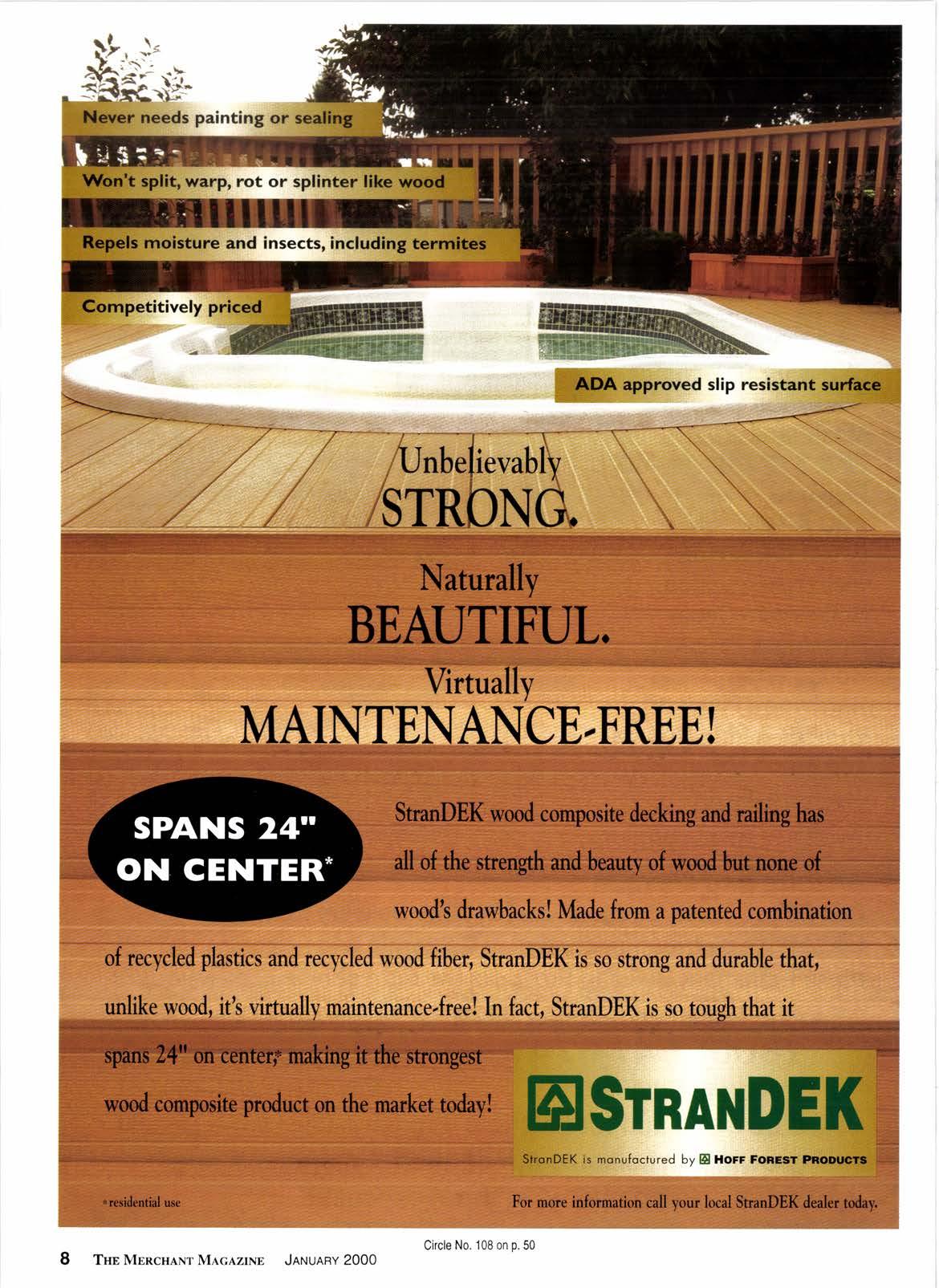NNWWW N .R\ \\ & $'!\jN.N\\ SN\\\N\]NNSN NNNN *iN N N - " N.\$N' StronDEK is rro.!iocl!re.r ir., ,,: HoFF FoREST pRODUCTS For more information call vour local StranDEK dealer todal'. C rc e lli 1 -r3 :'r p. 50 ,,residential usc Tttn \lr-rctt..rvr' \l rr;,rzrr-r: Jeltuepv 2000