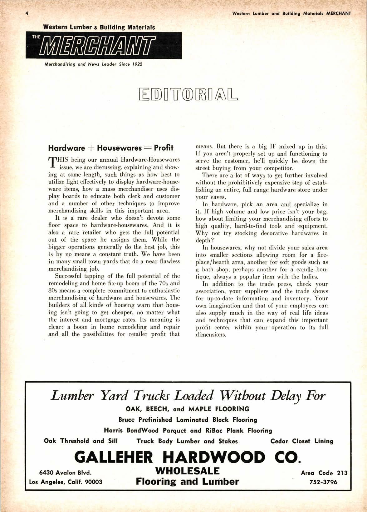 Lumber Yard, Trucks Loadcd Witbu,tt Dtkj For OAK, BEECH, ond MAPLE FLOORING Bruce Prefinished Lominoted Elock Flooring Horris BondWood Porquet ond RiBoc Plonk Flooring Ook Threshold ond Sill Truck Body Lumber ond Stokes Cedor Closet Lining GATLEHER HARDWOOD CO. 6430 Avolon Blvd,. WHOLESALE Areo code 2I3 Los Ansetes, cctif. eooo3 FlOOfing and LUmbef rs2-37s6