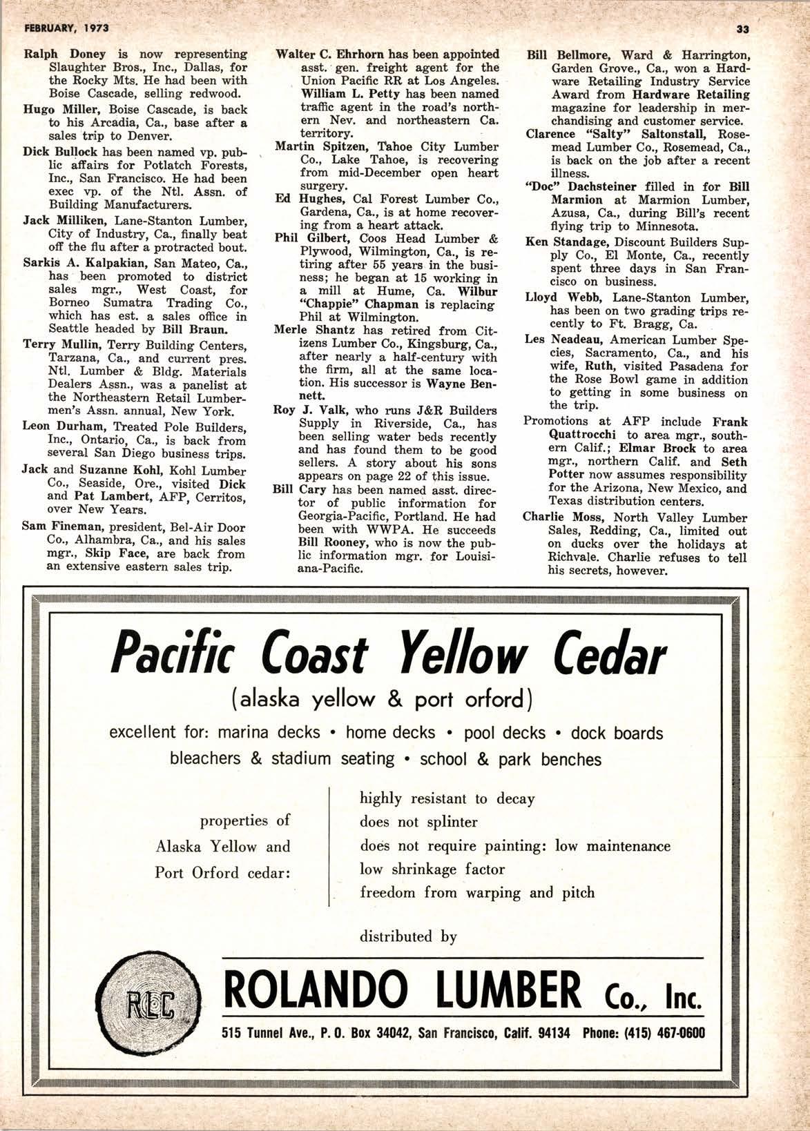 J. Milford Johnson, 76, Citizens Lumber Co., Kingsburg, Ca., died December 28,1972.