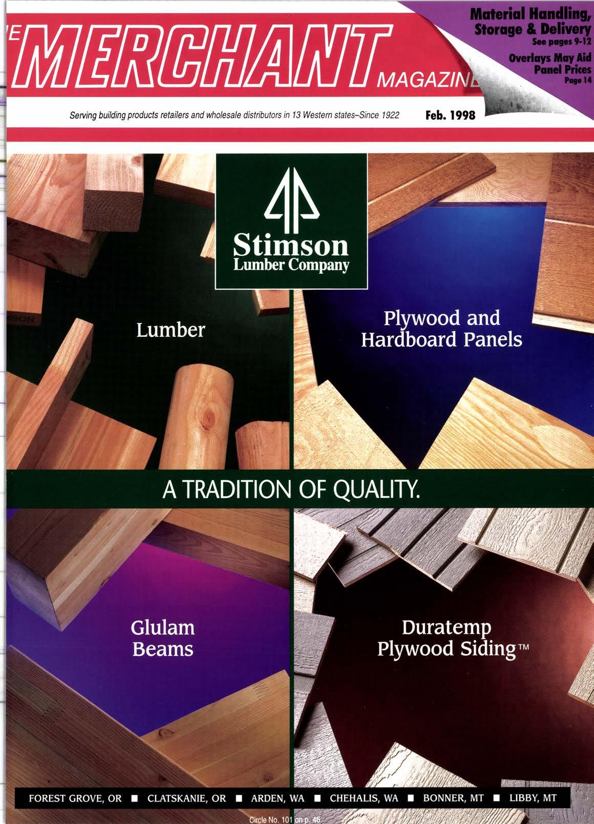 Ihe Mstc[anl !@azine, A Cdifomh Corpoation, (USPS 79S56{100) is puHidrsd monlhly at 45m Gampue Dr., Ste, 4811, ientporl M\ Ca 9266&1472 by The l\rkrchant Magazins, Inc. Psdodicals Postage pakl at Newport Beach, Ca., and dibld po6{ dflc$. lt b an indopond€rdy-owmd publication lor ha retail, whdede and distribution brds ot he lumber aM hikeq p{tdt cts markeB in 13 w€stcm sl8tas. Copybhl@1998 by Tte Me{chant Magazine, Inc. Cover ard entire con. lgnts are ftry Fobctgd and must nd be reproduced in any manner withoul written permissbn. All Fights Reserued. lt resett w 0E 4fit lo a@F or rejec't any editorial or advertisiru maner, ard assJmes no liability fo{ materials fumished to it.