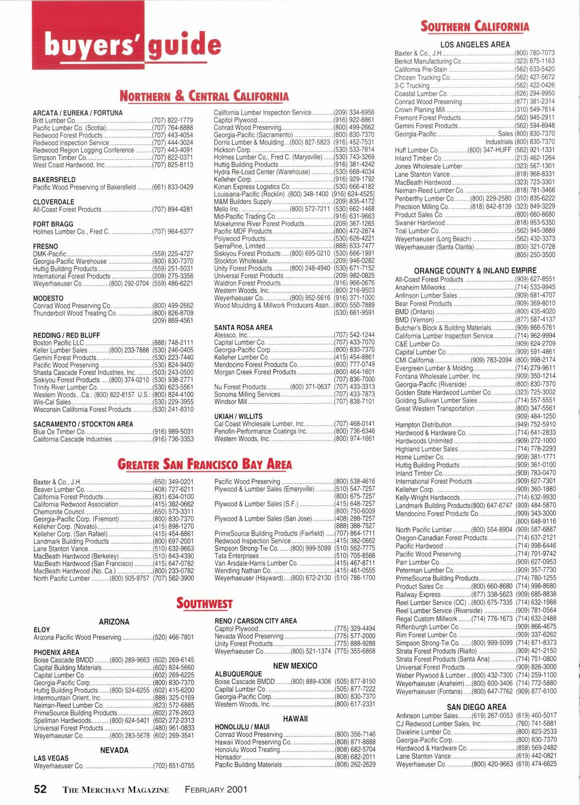 Seruing building products retailers and wholesale distributors in 13 Western states-Since 1922 Iebruory 2001 @ ffi