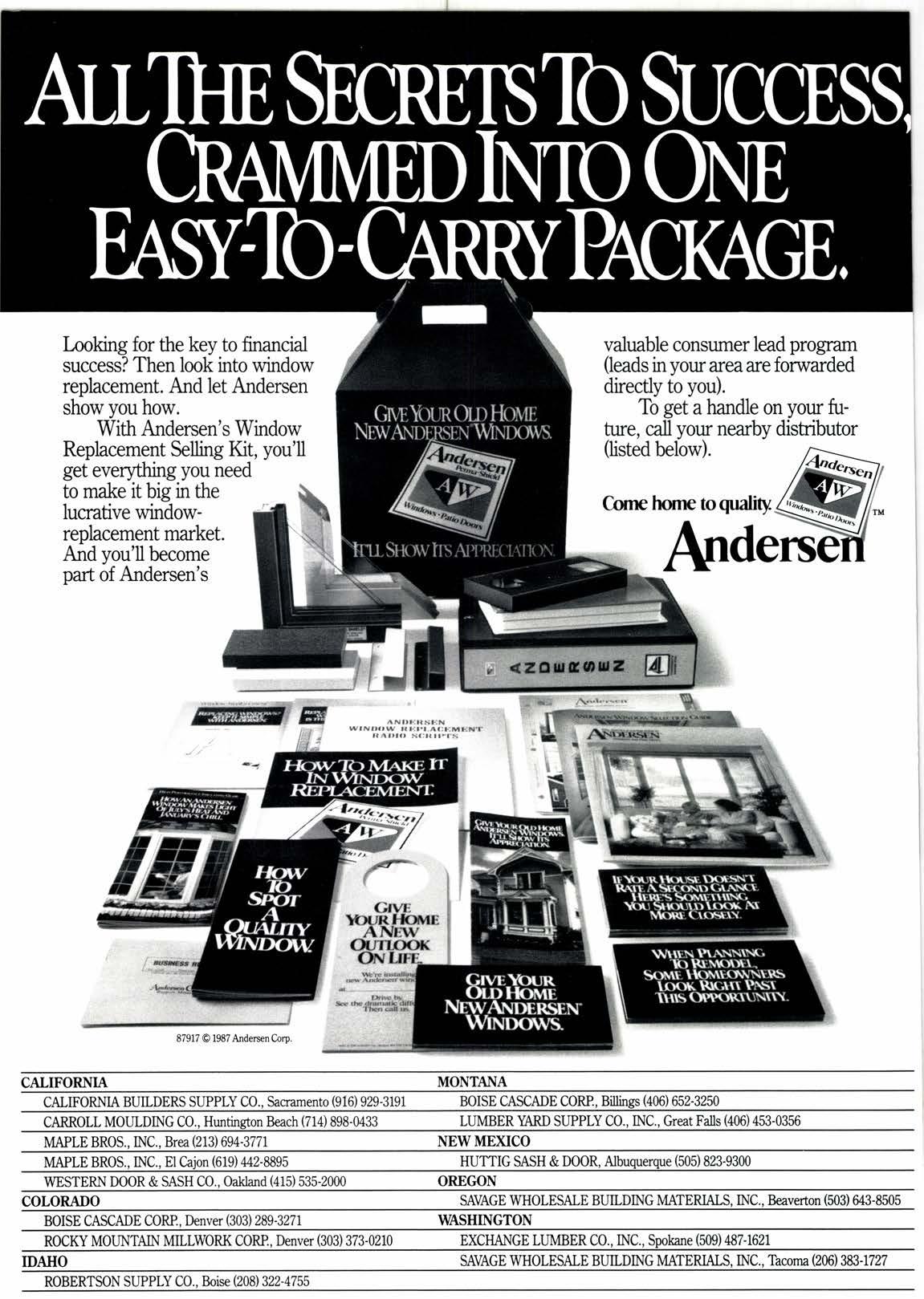 With Andersen's Window Replacement Selling Kit, you'Il get everything you need to make it big in the lucrative windowreolacement market. And you'll become part of Andersen's