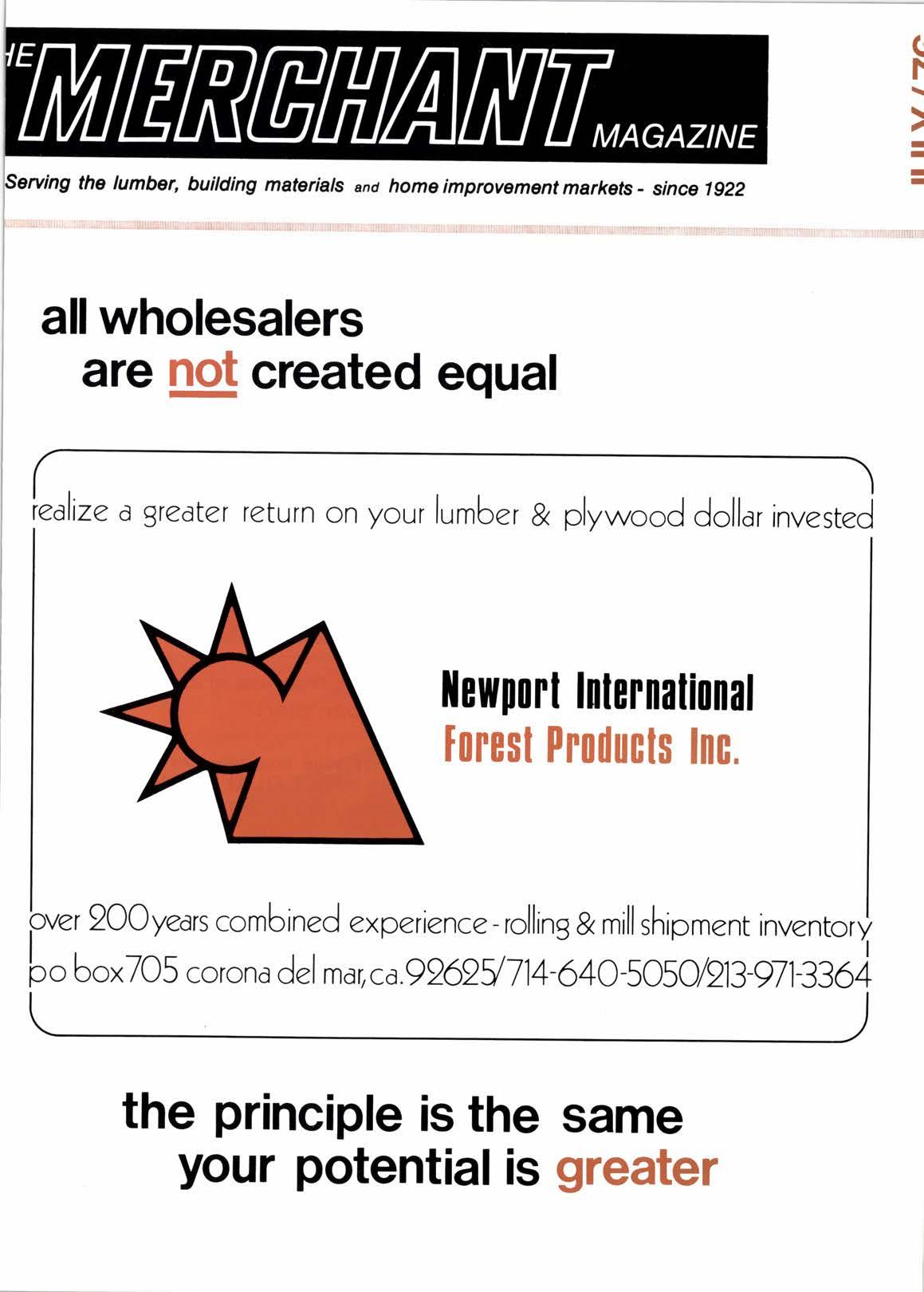tR ,4, the lumber, building materials ana home improvement markets - since lg22 all wholesalers are not created equal 'r,ealize a greoter return on your lumber & plywood dollar investej llewrurl Inlernatiunal loresl Producls IltG. f": 2OOyears combined expenence- rolliry & mrll shipment inventor{ !o box7o5 corond del mar ca.92625/714-640 50501213-9713364