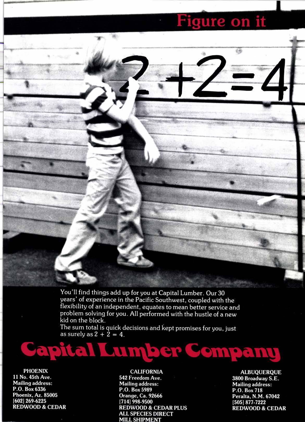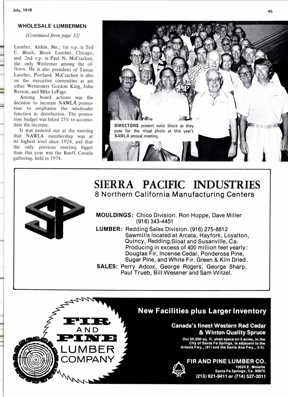 Serving the lumber, building materials and home improve'ment markets in 13 Western Sfafes - Since 1922 VOLUME 57, No. 1 JULY, 1978 CALENDAR CLASSIFIED ADS EDITORIAL PAGE NEWS BRIEFS LMA NEWS & VIEWS NORTHWEST NEWS MONTANA NEWS BUYERS GUIDE 52 ADVERTISERS INDEX 54 OR NEWS and FEATURES W