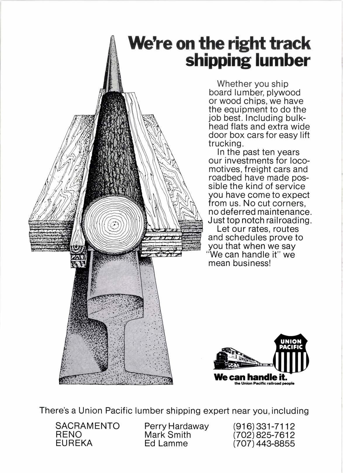 There's a Union Pacif ic lumber shipping expert near you, including 0i. Unfoa P.cific rdlrord progb SACRAMENTO RENO EU REKA Perry Hardaway Mark Smith Ed Lamme (916) 331-7112 (702) 825-7612 (707) 443-8855