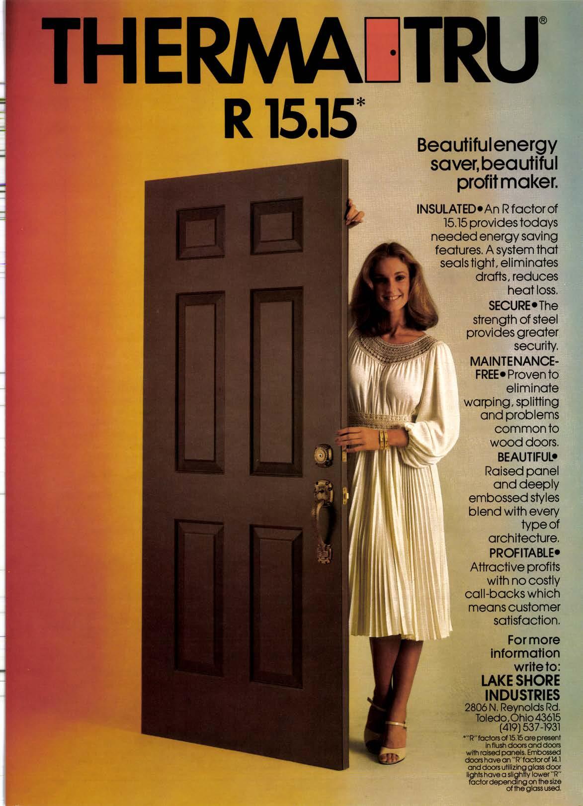 For more informotion writeto: LAKE SHORE INDUSTRIES 2806 N, Reynolds Rd, Toledo.Ohio43615 (4re)537-le3l *"R" fociors of ]5,'15 ore presenl in flush doors ond doors with roised ponels. Embossed doors hove on "R' foctor of l4.l ond doors utilizing gloss door lights hove o slighily lower "R" foclordepenging on the size ol lhe gloss useo. 'y ,Fi r*. g ,/lf '[f tl fi$ fi