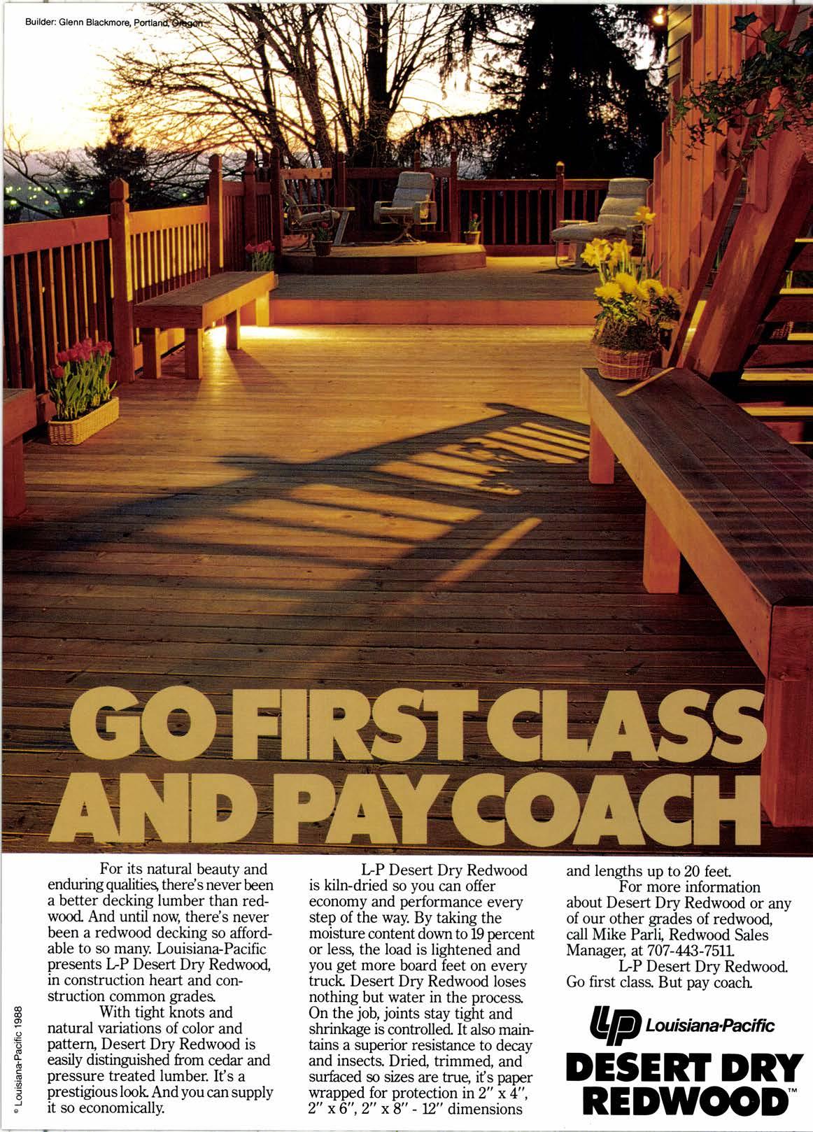 For its natural beautv and enduring qualities, there s never been a better decking lumber than redwood And until now therds never been a redwood decking so affordable to so many. Louisiana-Pacific presents LP Desert Dry Redwood, in construction heart and construction common grades