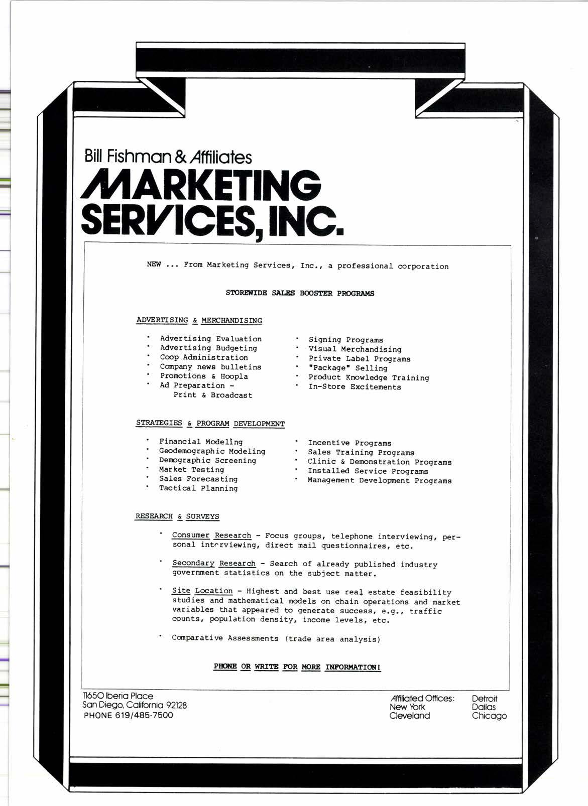 FROM NORTHERN CALIFORNIA & OREGON: contact Davld Cutler, 4500 Campus Dr., Suite 2180, Newport Beach, Ca. 92660. Call (714) 852-1990'