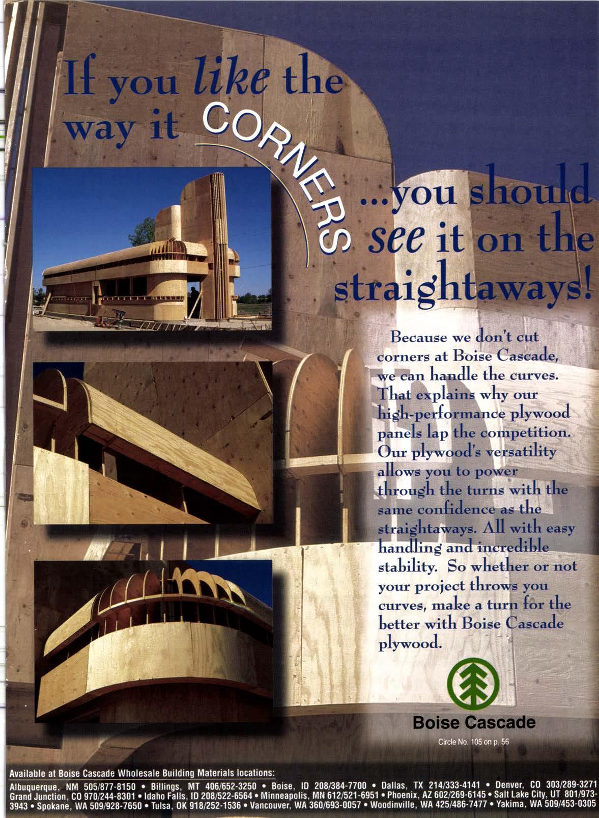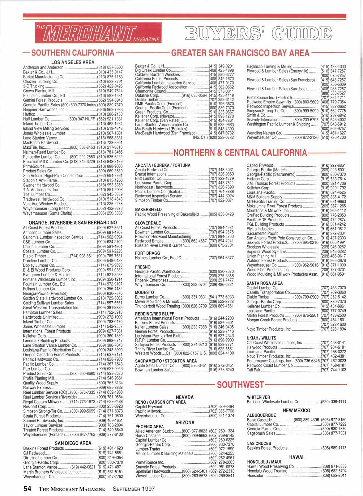 furnished to it. Since 1965 WE OO THE DISTANCE FOR OAR CUSTOMERS! Doug fir KID 1x2-4x12 & larger Redwood KID S4S & patterns Redwood uppers & commons Cedar KID $TK Ro. S{S & patterns Cedar K/D C&Btr. Ro. S4S & patterns PRODUCT SRTCS CO. 2202N. Pacific (P.O. Box 4989), Orange, CA 92863-4989 (714) 998-8680 . (800) 660-8680, FAX71 4-921-8249 )Wa, (\ rir l* t-.-l* \ (* \*\ rd. I /* AzCo, N.t. Plus Alaska & Hawaii Serving 13 Western states ADVERNSING OFFICES Adverlising rates upon request USA: Chuck Casey, 4500 Campus Dr., Suite 480, Newporl Beach, Ca. 926601872. Telephone (714], 852. 1990 Fax 714-852-0231 SOUTH AMERICA: Charles Hallifax, Av. Americo Vespucio Norte 322, Ol. 13, Las Condes, Santiago, Chile. Tel: (011)-56-2207 1257 FAX011-56.2207 1262 4 THB MrncHlnr Mlcazrxr SepreNeen 1997 Circle No. 104 on o. 56
