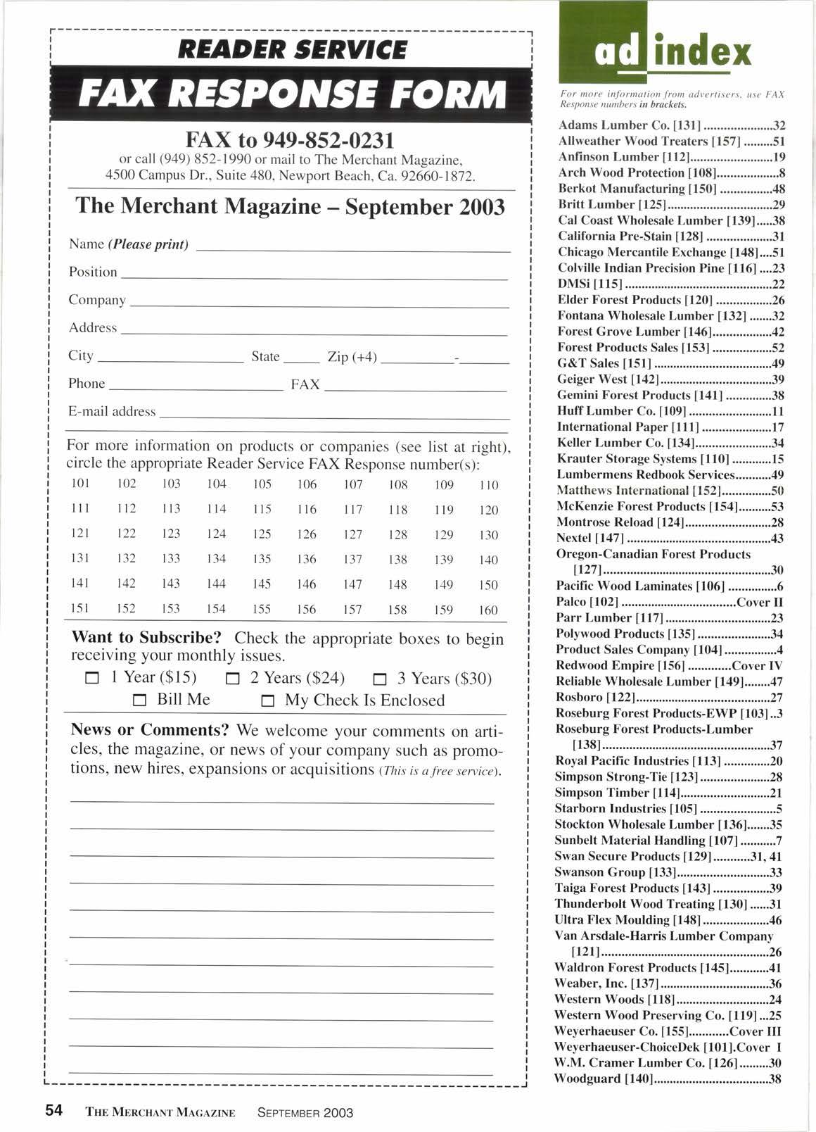 Reader Service FAX Response number(s): ro4 105 106 r07 108 109 I 10 rl4 115 116 117 118 ll9 t20 101 102 103 lll t12 113