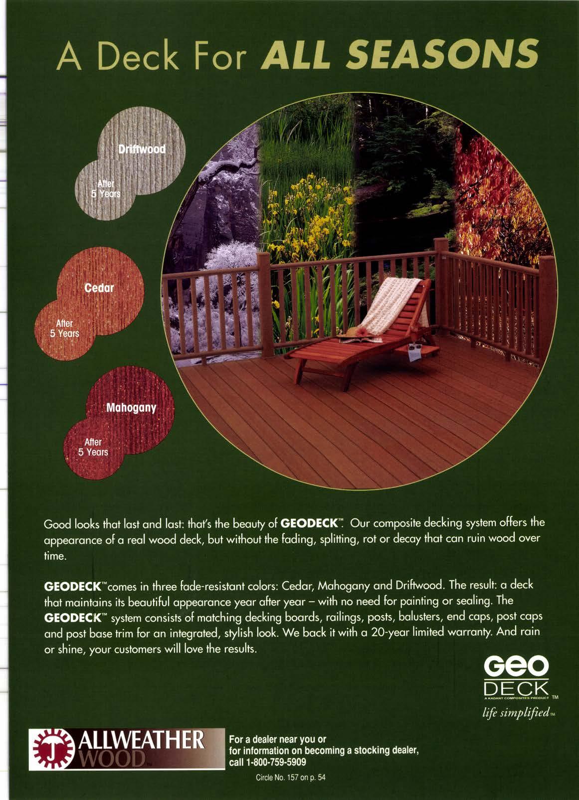 Classified tlcrkelploce 0biruories r0! x^Y ifllt omtff^tr Ahout the Cover The fionl cover is a paid adverlisement, this month sponsored by Weyerhaeuser's ChoiceDek. Since 1965 DOWN TO EARTH REOWOOD COMMONS . REDWOOO REDWOOD TIMBERS . FIR CEDAR CLEARS . CEDAR T PRODUCT SRTCS CO. 221 W. Baywood Ave. (P.0. Box 4989), Orange, CA 92863-4989 , Fax714-921-8249 , (714) 998-8680 (800) 660-8680 VAIUES UPPER GRADES FINISH IMBERS tI r F t t' : l 4 Tnn Mnncslnr MaclzrNB SeprEl,leen 2003 Circle No. 104 on p. 54
