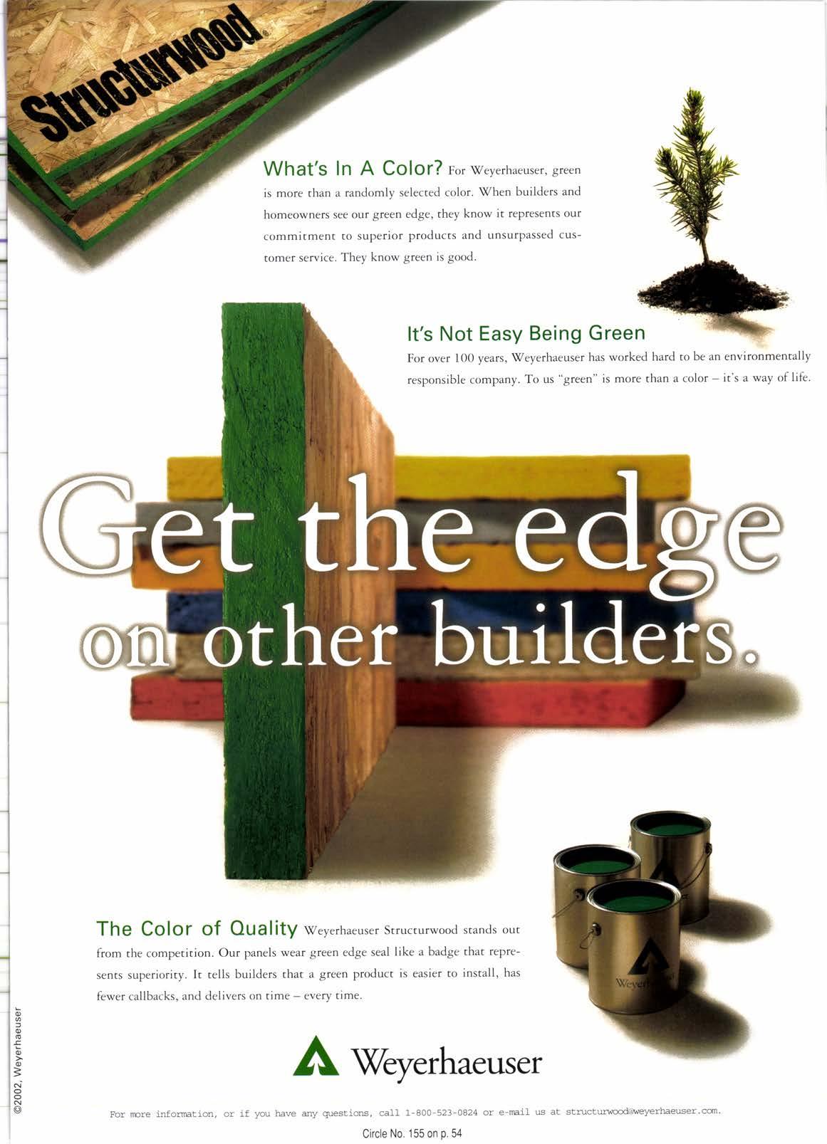 sreen is more than a randomly selected color. rVhen builders and homeowners see our green edge, they know it rePresents our commitment to superior products and unsurpassed customer service. They know green is good.