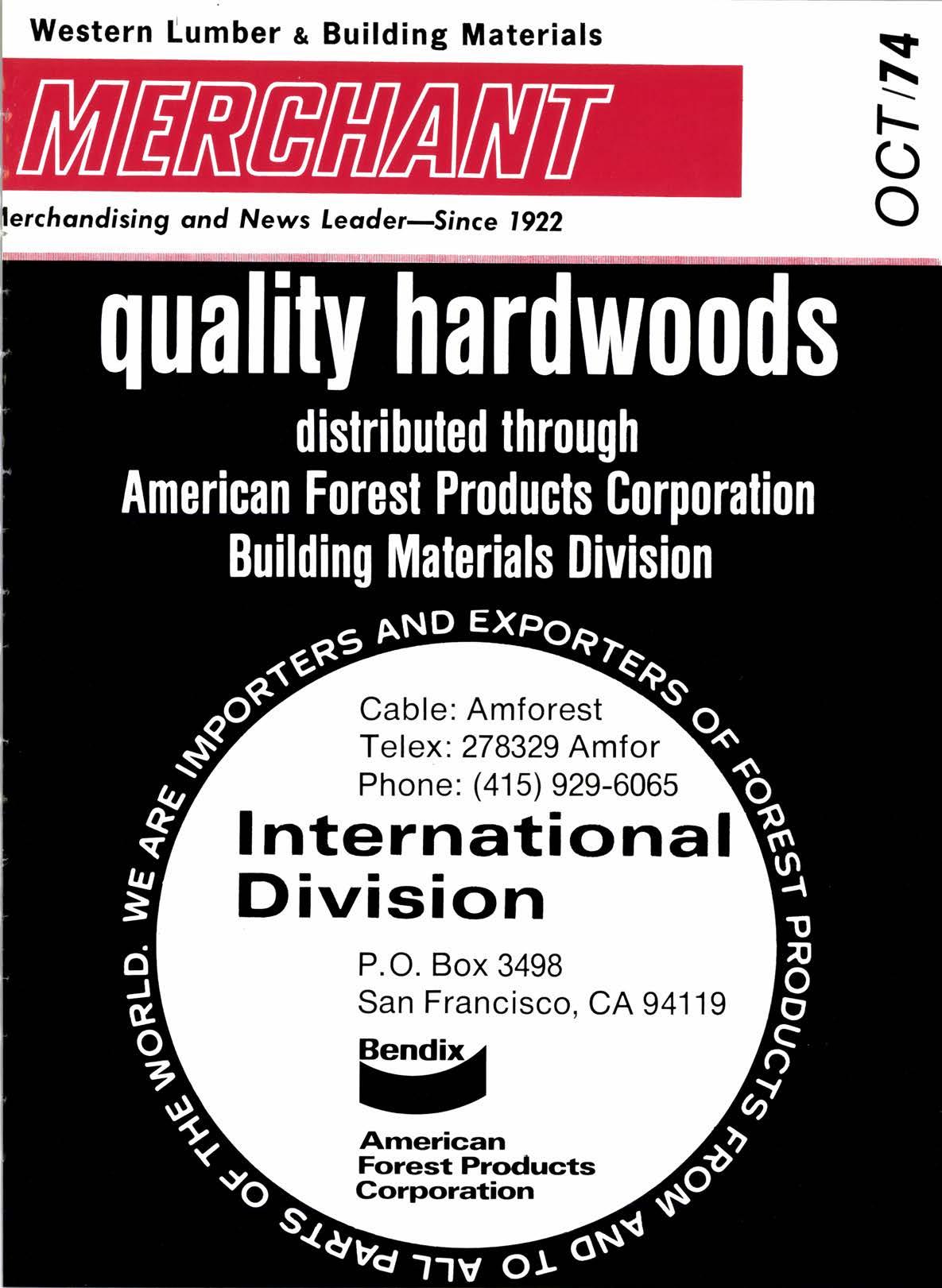 Western Lumber e Building Materials erchqndising ond News Leoder-Since t922 Cable: Amforest Telex: 278329 Amfor Phone: (41 5) 929-6065 lnternational tlr lvtston P. O. Box 3498 San Francisco, CA 941 19 Bendix^t U Arnerican Forest Products Corporation \r \ l-. O o