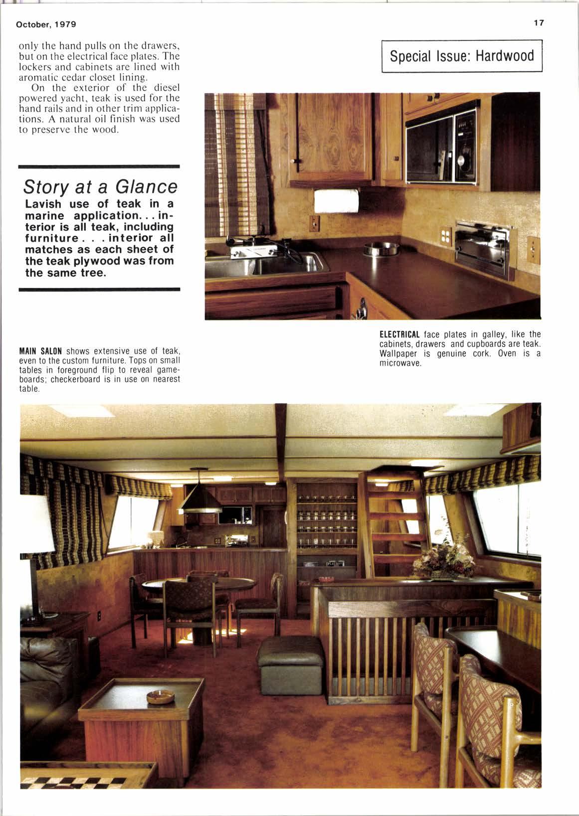 But its attributes don't stop there. To the boat builder, teak's resistance to the marine elements of salt water and the sea air are probably more' important. He knows that the wood has a superb performance record under all kinds of ocean conditions.