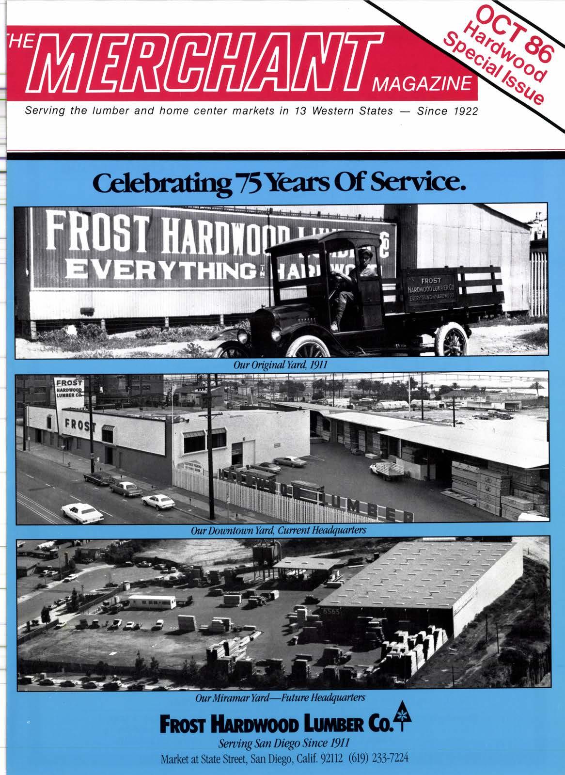 20 76 18 22 24 27 27 Personals 48 New Products 52 New Literature 74 Obituaries 80 Copyright O 1986, The Merchant Magazine, Inc. Cover and entire contents are fully protected and must not be reproduced in any manner without written permission. The Merchant Magazine assumes no liability for materials furnished to it. Serving 13 Weslern Slates I{ARDWOOD SPEGIAL ISSUE Morc than 20 yeans in Cdar & Redwood Gontainer and Piggyback Loading Capabilities