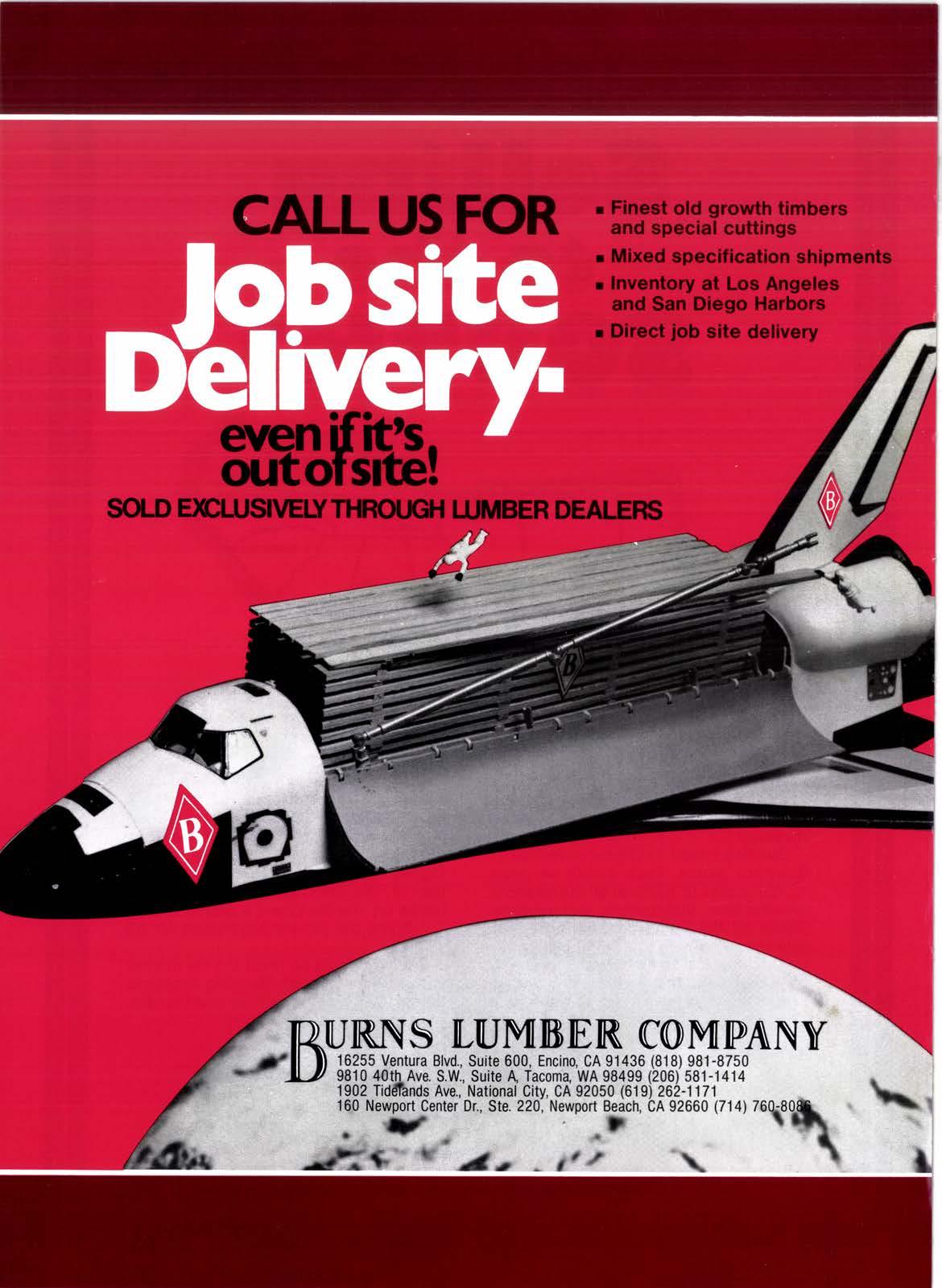 I-ane-Stanton-VancelumberCo. ........, 6l kwisCo..Inc..FalmerG. 31 LindenLumberCo..... ........ 51 Littlelakelndustries.. 69 [,os Angeles Hardwood Lumbermens Club 2l l,umberProducts..... ........35 MacBeathHardwood ........,18 M&MBuildersSupply.. 65 MarinersForestProducts ....... 33 Marquart-WolfeLumberCo. ..... 37 MutualMoulding & LumberCo, ......' ffi NorthAmericanPlywoodCorp. ...... 75 NorthgatelumberCo. ... .....' 30 Osgood, Inc.,RobertS. ..."'.. !t0 hcificForestProducts. ........ 24 hcificlumberTerminal ...... 59 Pacific Wood Preserving of BakersfieldCorp. 45 FrulBunyanLumberCo. 62 knberthyLumberCo... 8 hnberthyMicroSystems ....... 55 PhilipslumberSales .. 69 Primel,umberWholesale, Inc.. ... 4l PnoductSalesCo. ...,. 4 RedwoodCoastLumberCo. ...... 57 Rolando[,umberCo.... ......., 47 SanAntonio FoleConstruction Co.. .' 16 SmurfitWoodProducts ...... 22 South Bay Forest PmductsCo. 27 SouthwestHardwoodCo. 4 SpellmanHardwood "'.... 67 Stanline, Irrc. CoverII SuperiorHardwoods....... ....'20 TrojanTransportation ........ t0 UnionForestProducts.... .....' 65 VaagenBros. Lumberlnc. ..... '. 2l WafdmnForest Products, Inc. Tl WhiteBrothers .......39 Western International Forest Products . 37 WesternRed Cedar llmberAsscciation 63 WesternWholesaleMoulding. .. ... 28 of lbrcst Products Van Loads 40'45'High Cu. 102" Flat Beds Shrink Wrap Available from No, Ca. COMPEITIIUE COST - BEST STRVICE For Rates and Service Callthe Hub City Nearest You; N0. CALIFORNIAHub City Golden Gate lbrminals (415)930-9368 ORECONHub City Portland Tbrminals (503) 297-8787 WASHINCTONHub City Seattle Tbrminals (206) 251-0488 Inquire about our Over-the-Road Tlucking Services - MC 168998 HUB CTIY TERMIITAIS, IT|C. Specializing in Piggyback llansportation "ShipWithThe Profesionals" * * * *