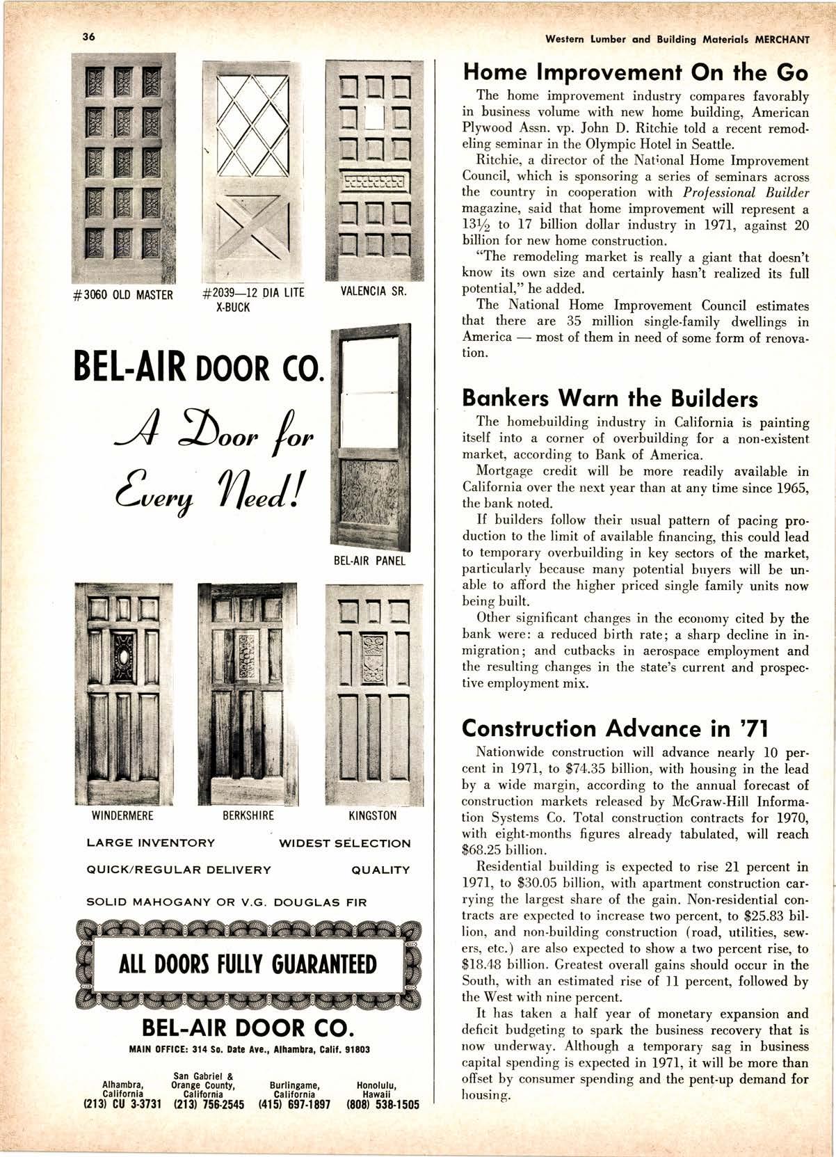 Ritchie, a director of the National Home Improvement Council, which is sponsoring a series of seminars across the country in cooperation with Prolessional Build,er magazine, said that home improvement will represent a I3yz to I7 billion dollar industry in 1971, against 20 billion for new home construction.