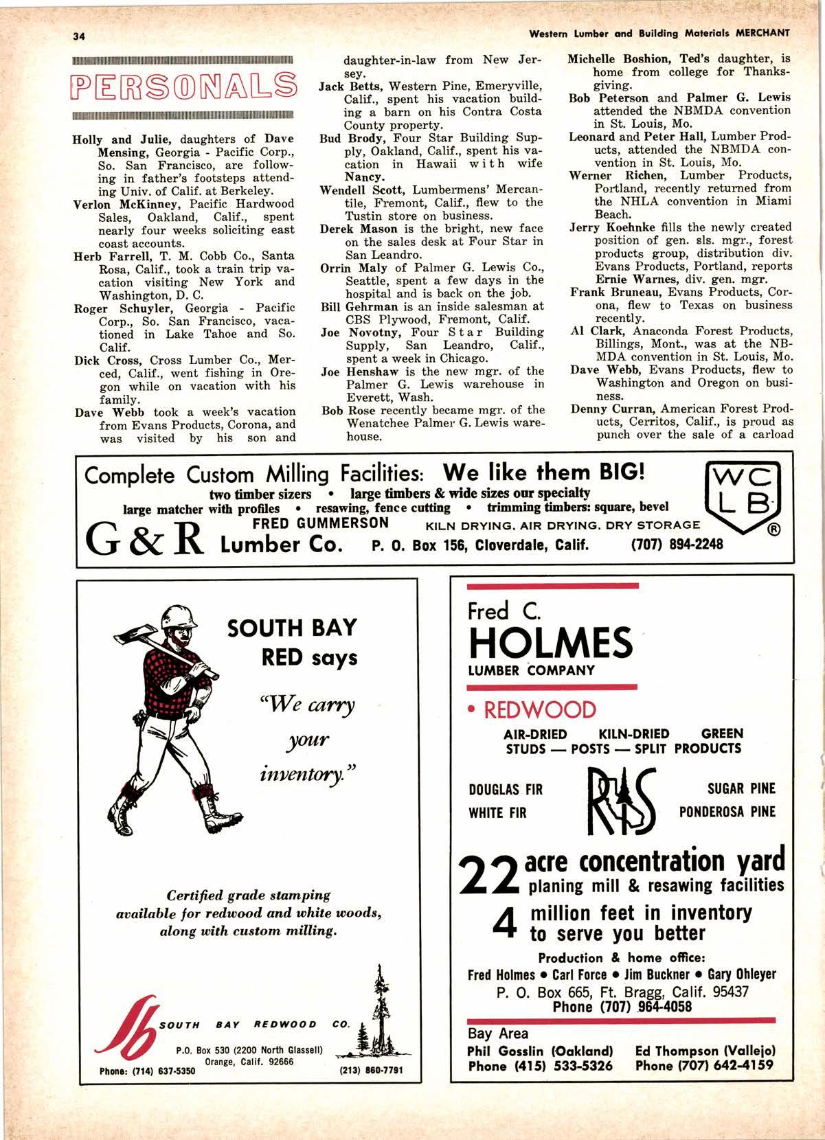 Bob Gaylord, Fir and Pine, Burbank, Calif., is back from a recent business trip to the Pacific Northwest.