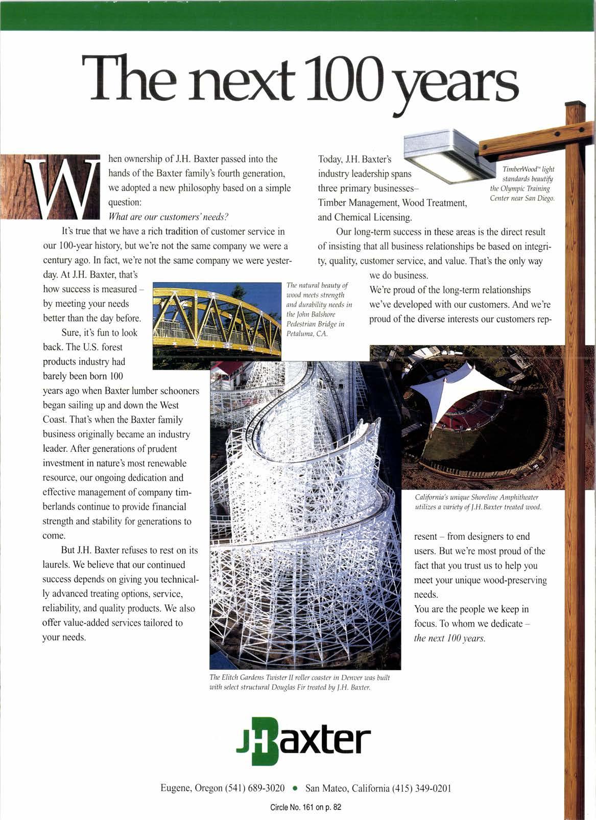 It's true that we have a rich tradition of customer servlce ln ow 100-year history but we're not the same company we were a century ago. In fact, we're not the same company we were yesterday. At J.H. Baxter, that's how success is measuredby meeting your needs better than the day before.