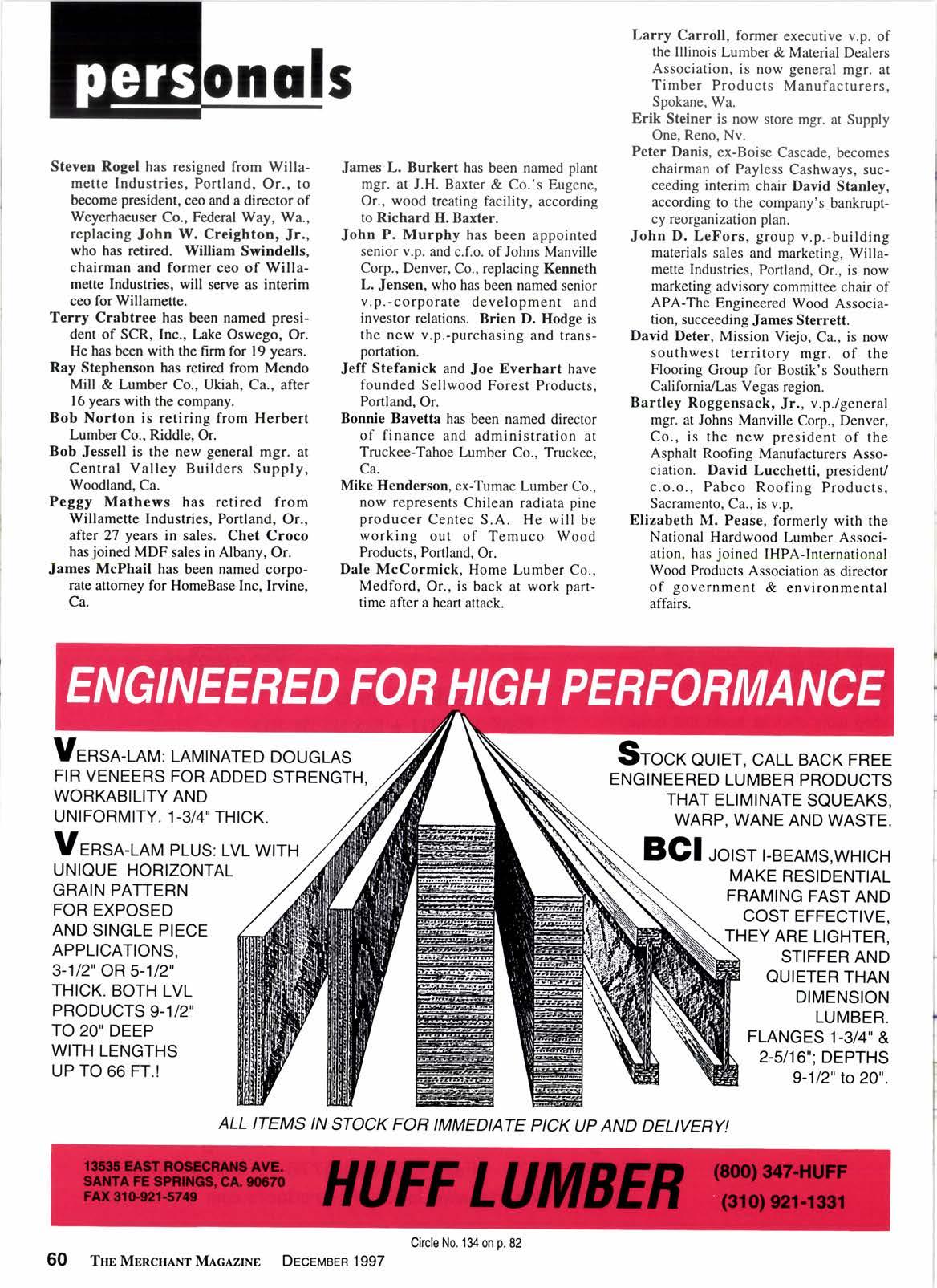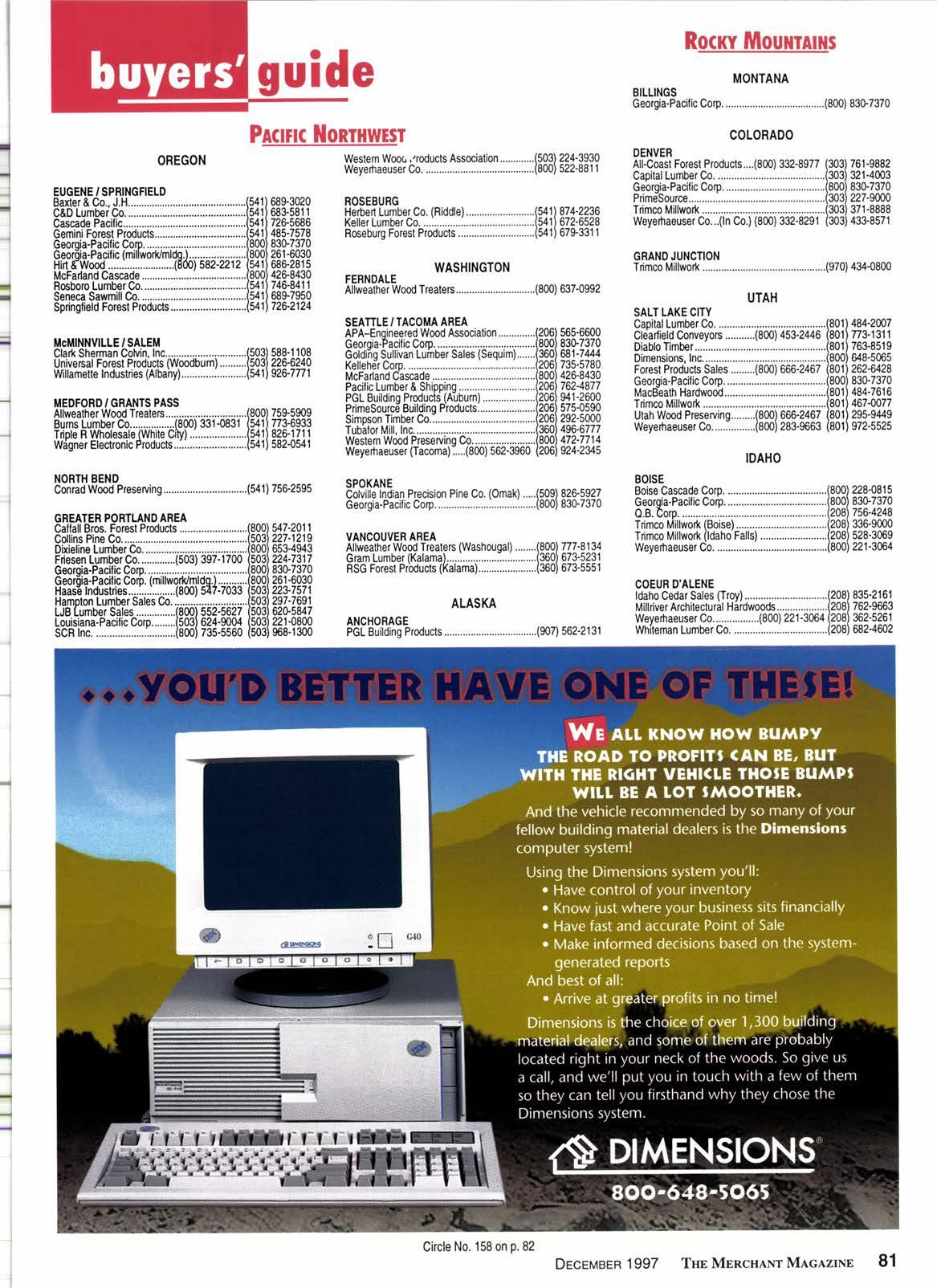 .tJ -1 I*fttilgt Fsrsst I rtill$t*fits frilil ffiG Chino, CA Division 800.864.6881 CIove rdale, CA Divisio n 800.767.2237 Englewood, C0 Division 800.525.8427 Ckcle No. 106 on p.82 ' DEcEtilaen 1997 THs MBncHlnt Mlclzlxr 5dP =fr ril il,,,f, s in 1975, meet Our -l -l